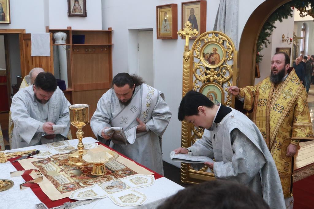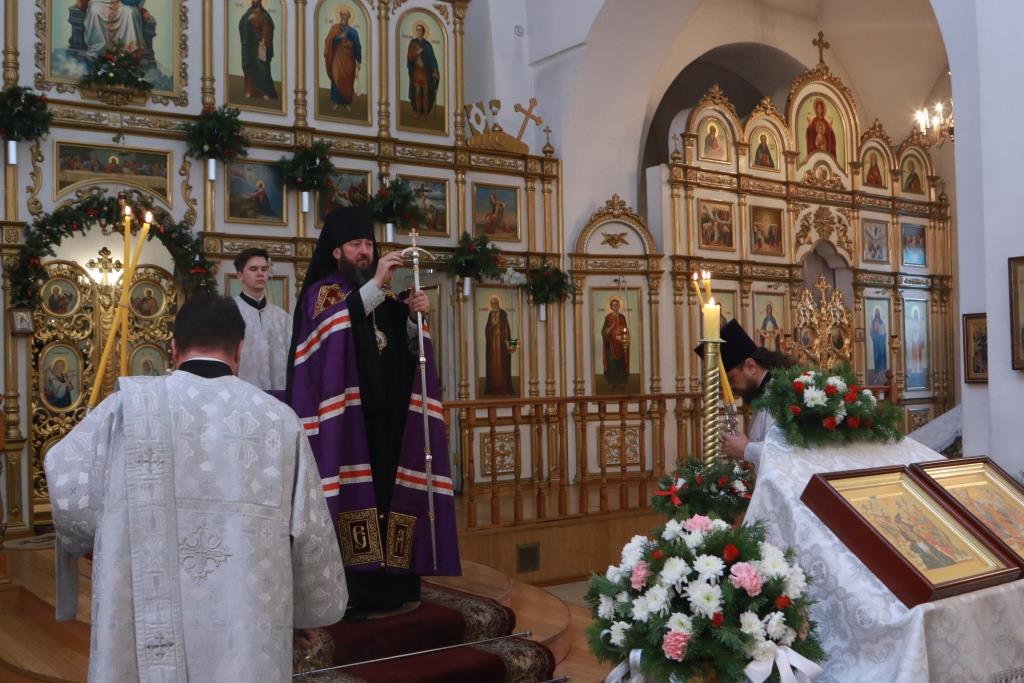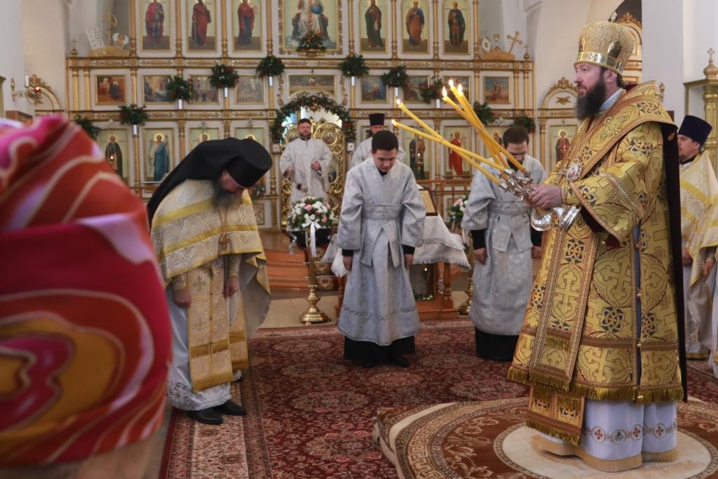 Преосвященнейший епископ Усть-Каменогорский и Семипалатинский Амфилохий возглавил служение Божественной Литургии святителя Иоанна Златоуста в Андреевском кафедральном соборе города Усть-Каменогорска. Архипастырю сослужили: духовник епархии архимандрит Спиридон (Теплухин), ключарь Андреевского кафедрального собора иеромонах Никодим (Авдеев), клирик собора иерей Алексий Клепиков, секретарь епархии диакон Илия Кван, протодиакон Андрей Дудник, диакон Владимир Лаврешин.