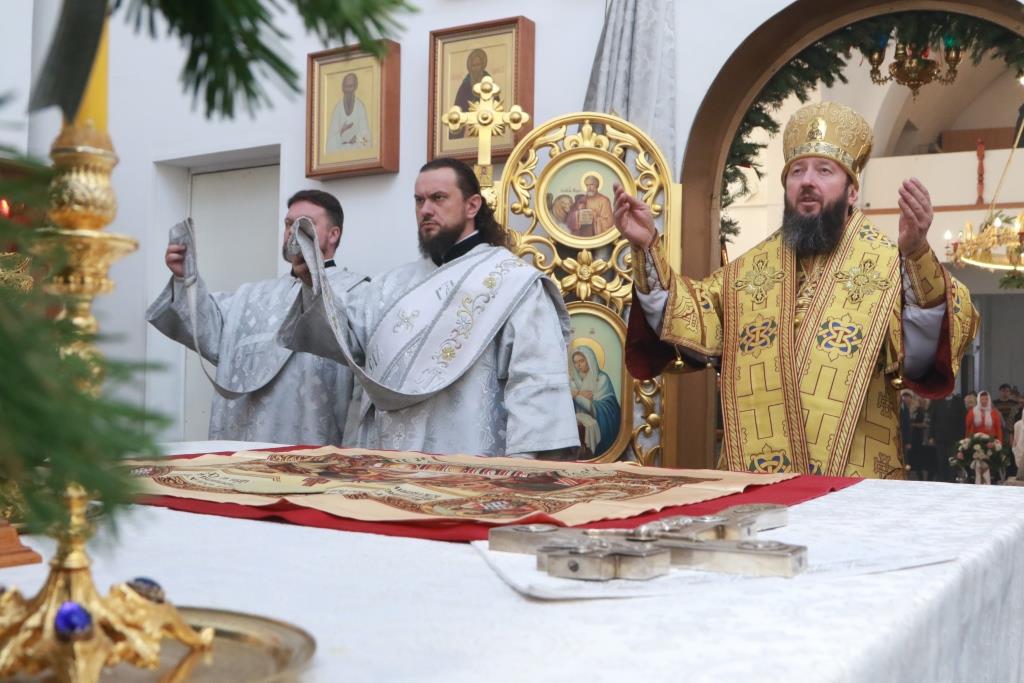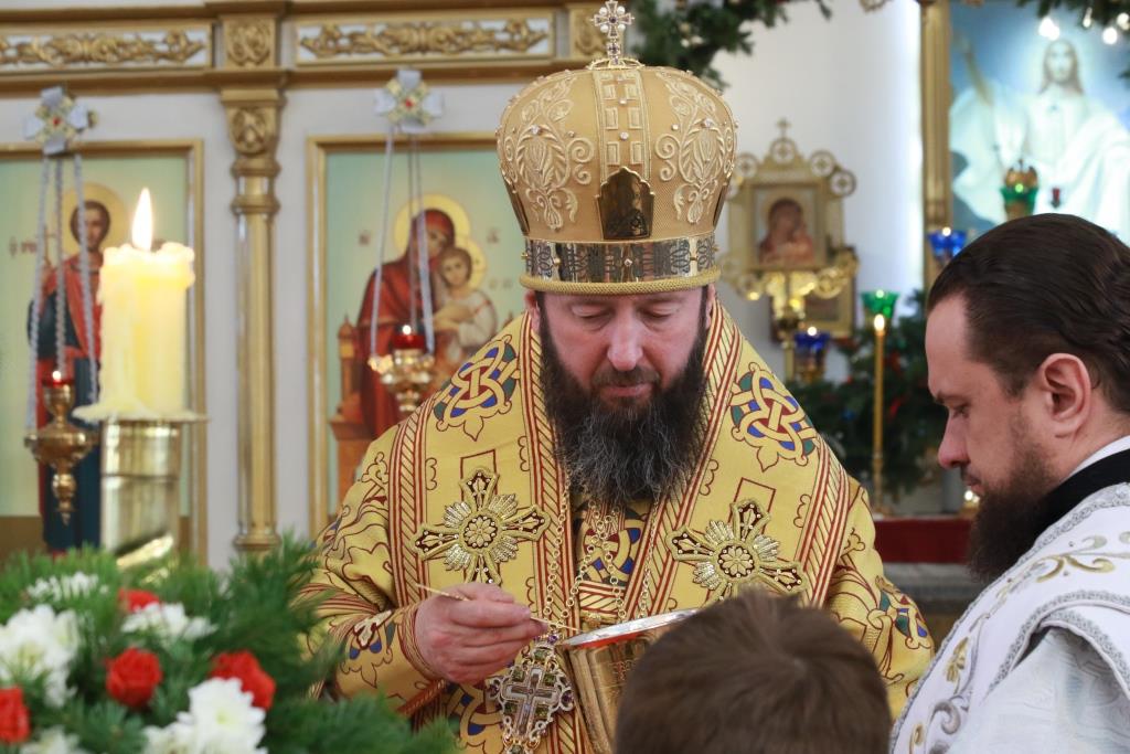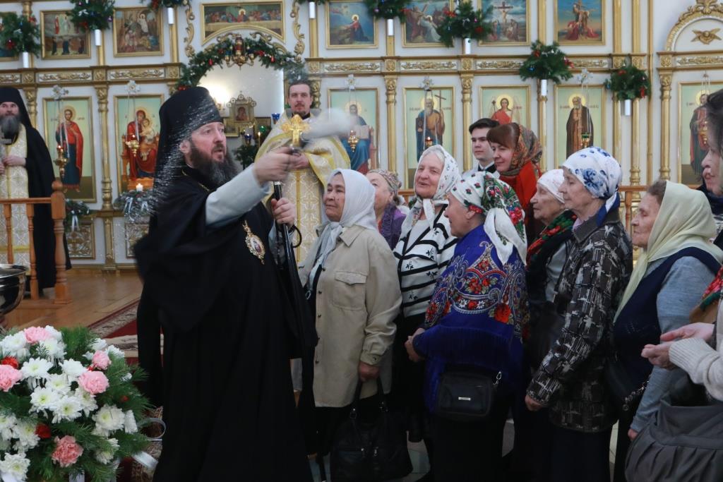 В завершение воскресного богослужения Преосвященнейший Владыка пожелал всем молящимся мира и спасения души и окропил молящихся святой водой.