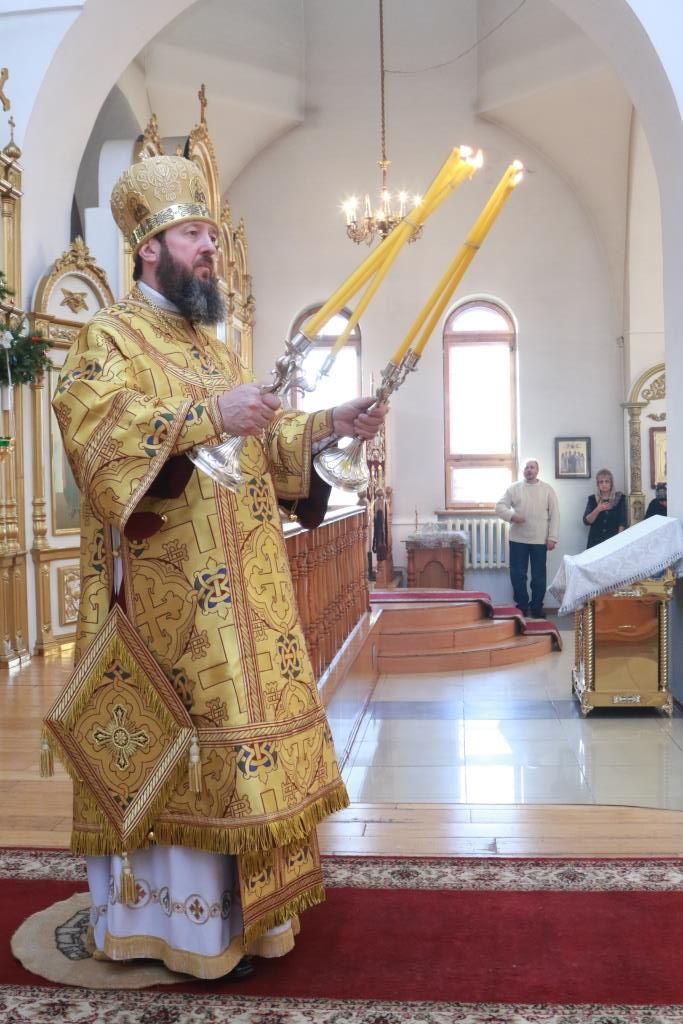 После окончания Божественной Литургии епископ Амфилохий обратился к собравшимся со словами проповеди.