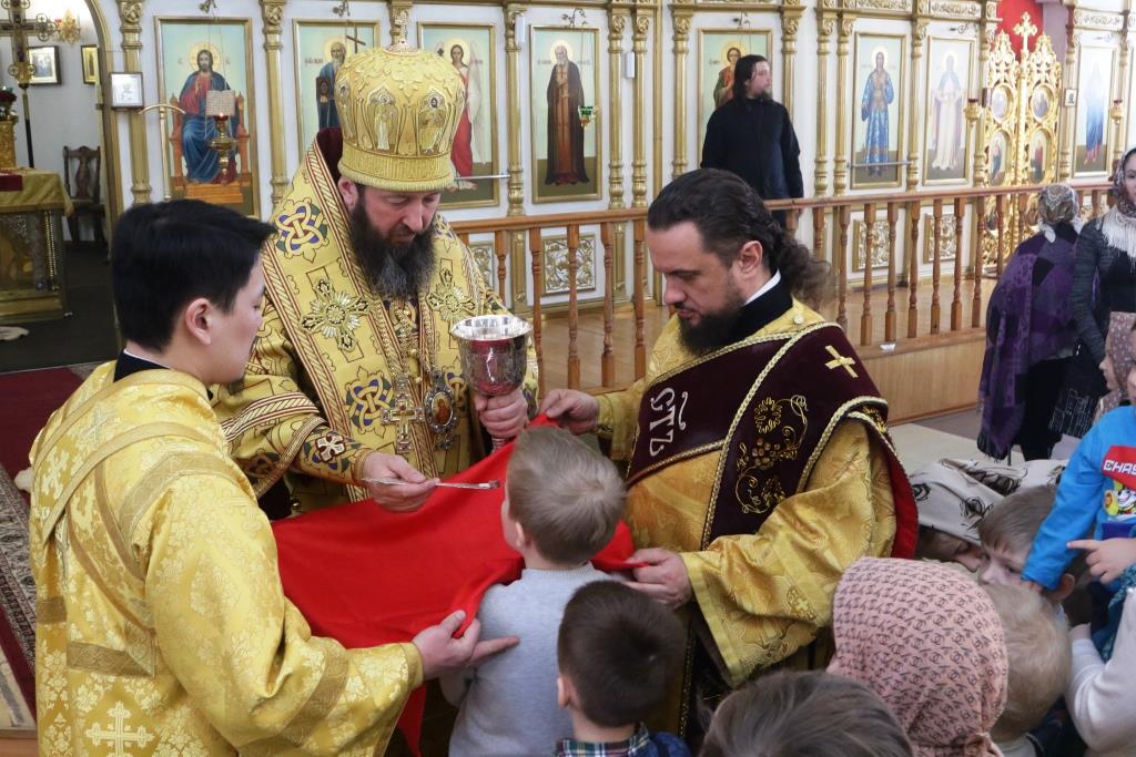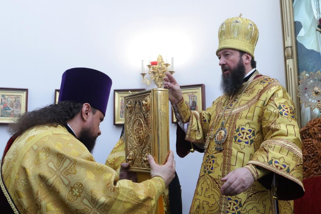 За воскресным богослужением молились: сотрудники епархиального управления, насельники Свято-Троицкого мужского монастыря, прихожане главного храма Рудного Алтая. Перед причастием проповедовал ключарь кафедрального собора. В завершение Богослужения Преосвященнейший епископ Амфилохи1 обратился к собравшимся с Архипастырским словом.