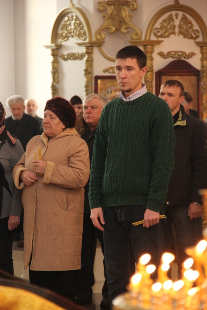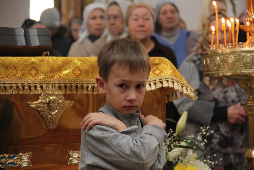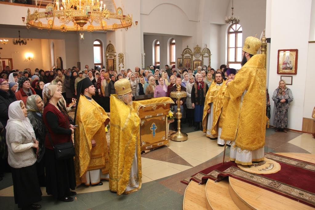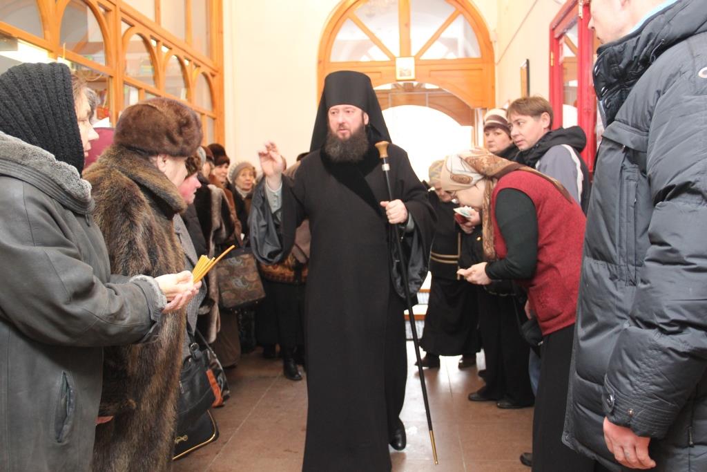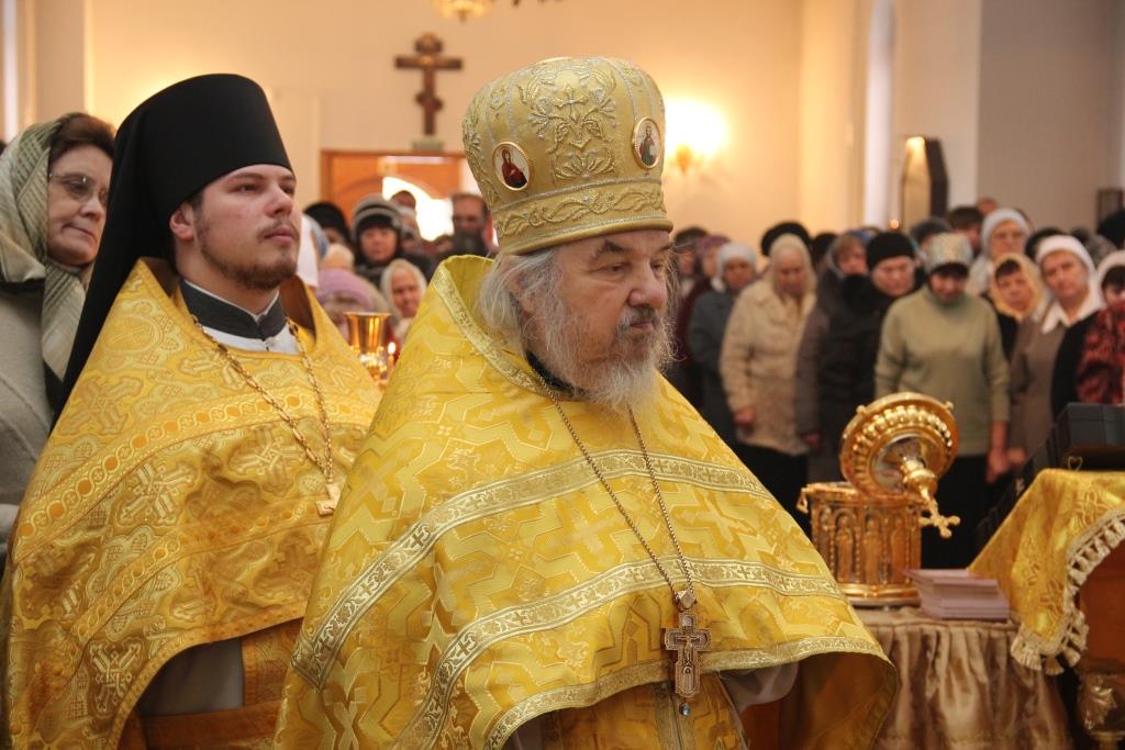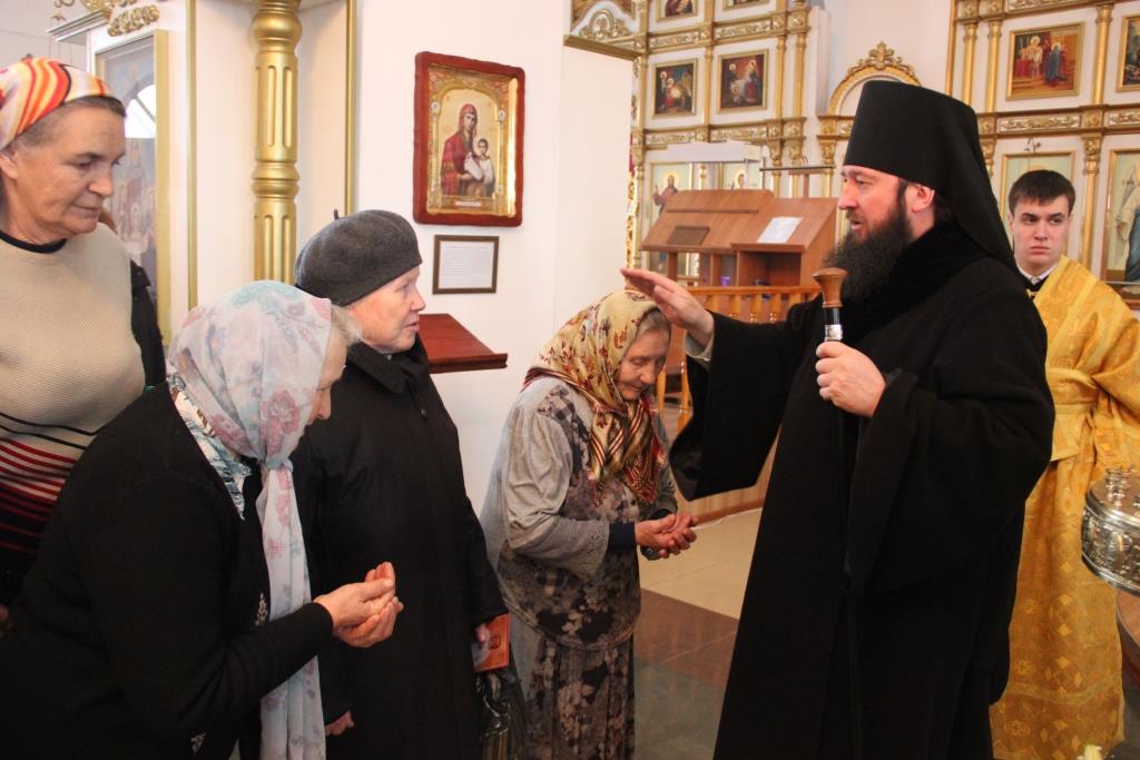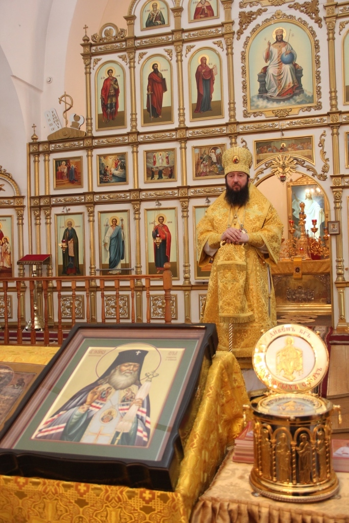 На полиелее было воспето славление Святителям Христовым Николаю и Луке, и после чтения Евангелия Архипастырь помазал верующих освященным елеем.