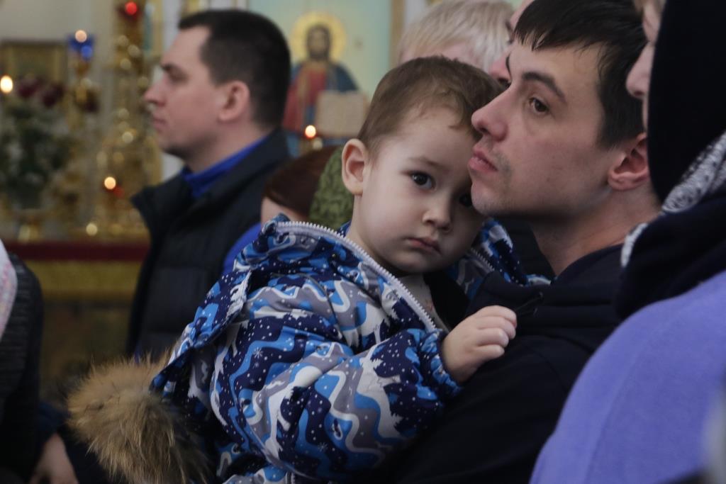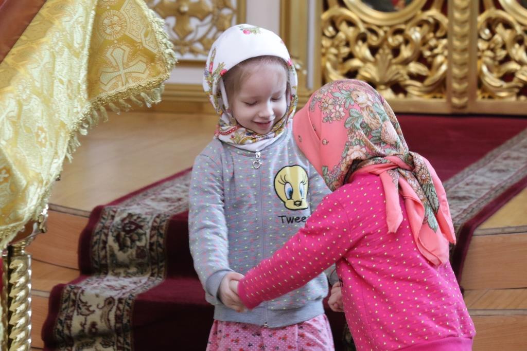 За богослужением молились сотрудники епархиального управления, насельники Свято-Троицкого мужского монастыря, преподаватели и воспитанники Центральной воскресной школы, прихожане кафедрального собора. Песнопения Недели сыропустной и Божественной Литургии исполнял хор Андреевского собора (регент – Н. Романцова).