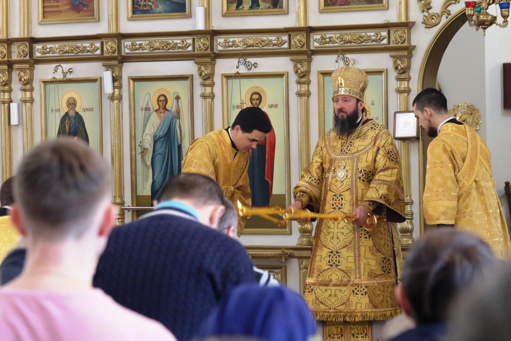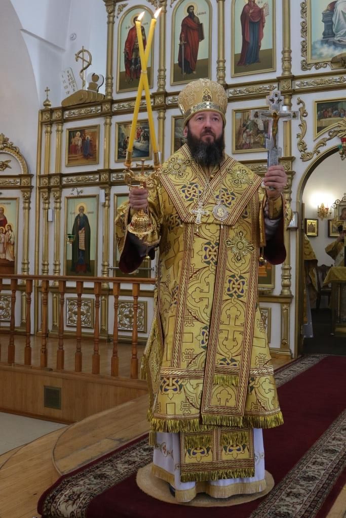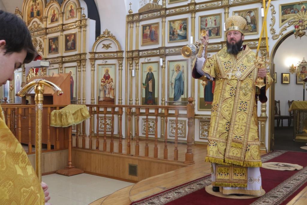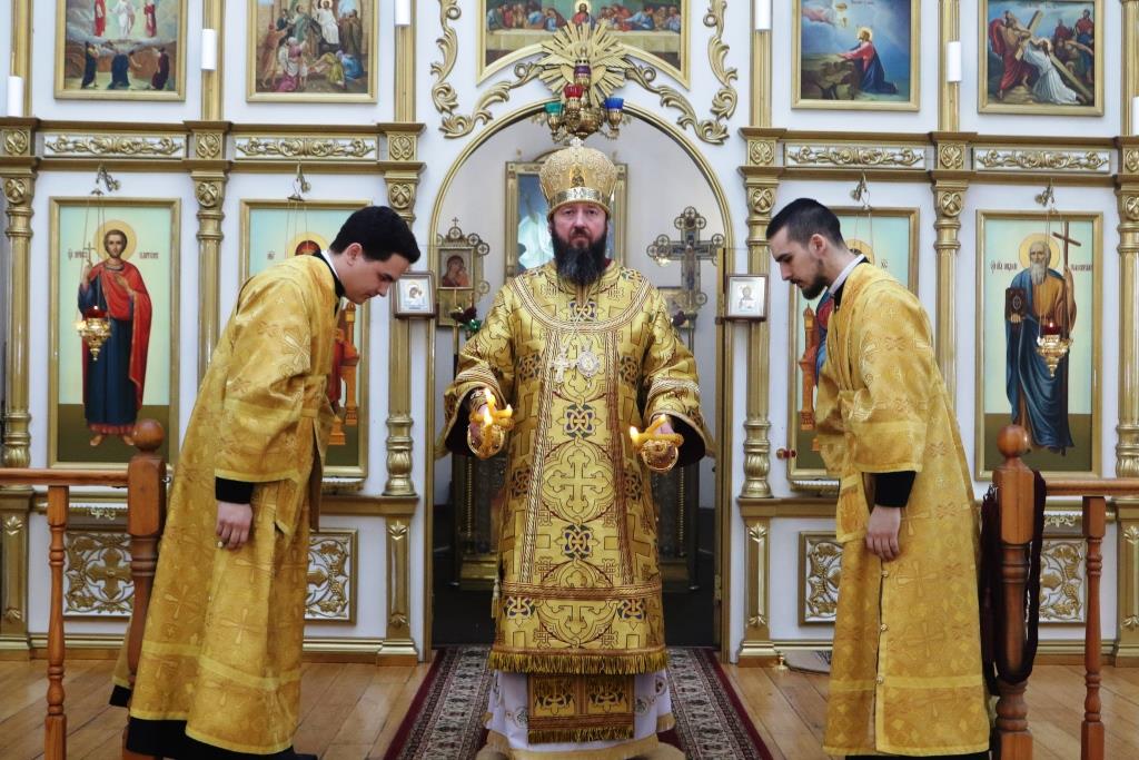 Управляющий Усть-Каменогорской епархией возглавил служение Божественной литургии святителя Иоанна Златоуста в Андреевском кафедральном соборе. Его Преосвященству сослужили: духовник Усть-Каменогорской епархии архимандрит Спиридон (Теплухин), ключарь Андреевского собора иеромонах Никодим (Авдеев), клирик собора иерей Константин Дьяков; секретарь епархии диакон Илия Кван, протодиакон Андрей Дудник, диакон Владимир Лаврешин.