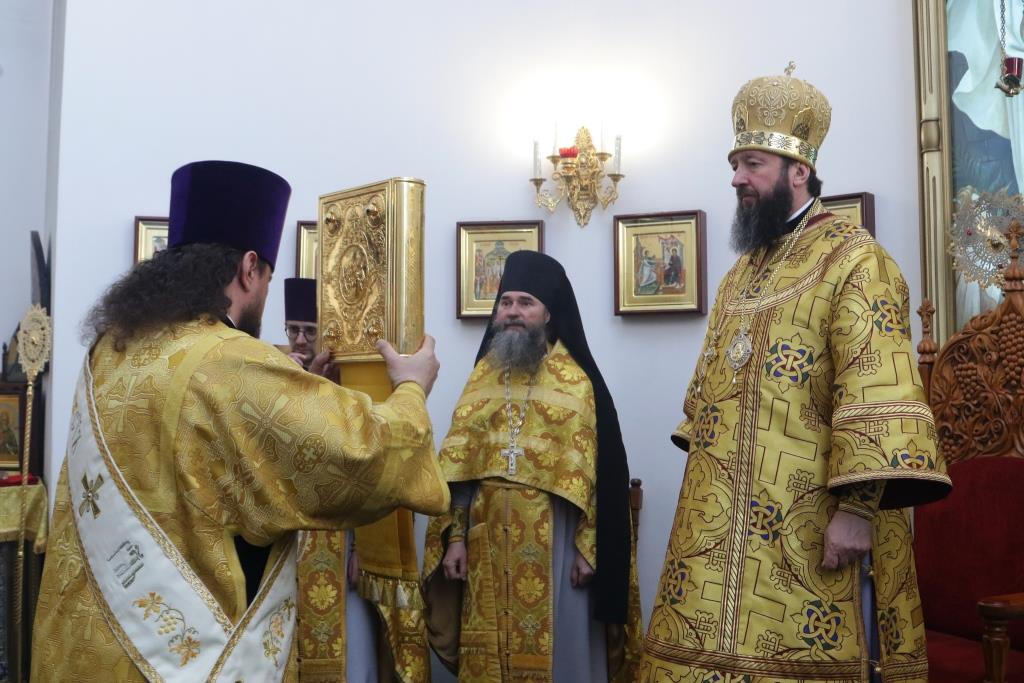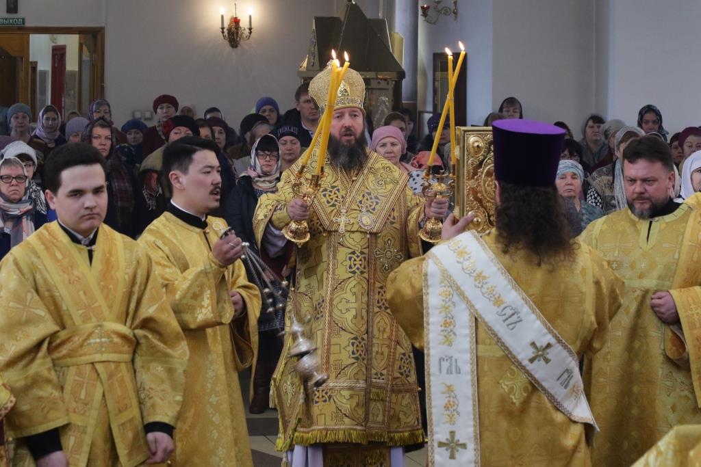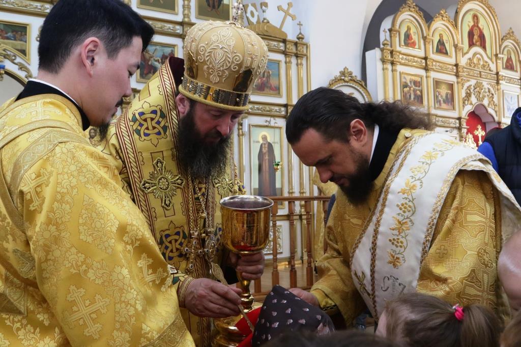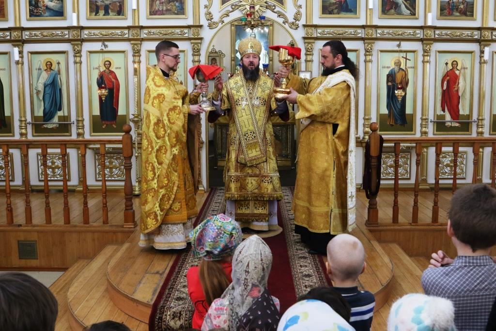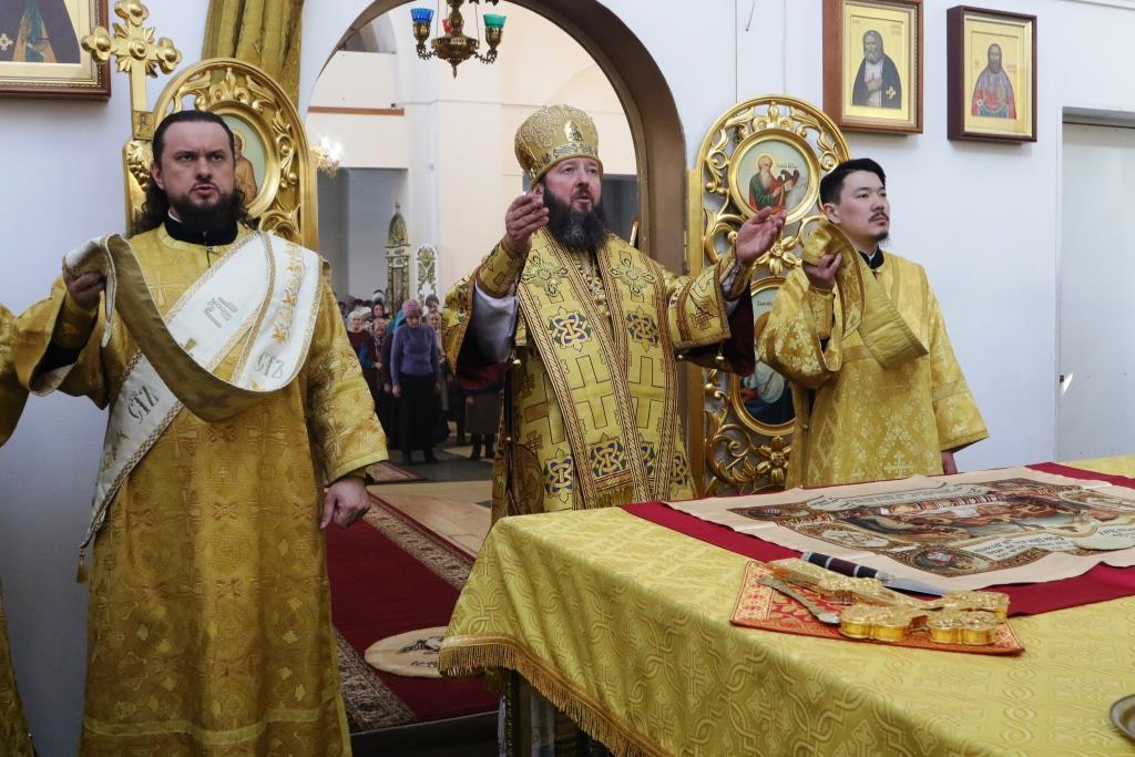 Управляющий Усть-Каменогорской епархией возглавил служение Божественной литургии святителя Иоанна Златоуста в Андреевском кафедральном соборе. Его Преосвященству сослужили: духовник Усть-Каменогорской епархии архимандрит Спиридон (Теплухин), ключарь Андреевского собора иеромонах Никодим (Авдеев), клирик собора иерей Константин Дьяков; секретарь епархии диакон Илия Кван, протодиакон Андрей Дудник, диакон Владимир Лаврешин.