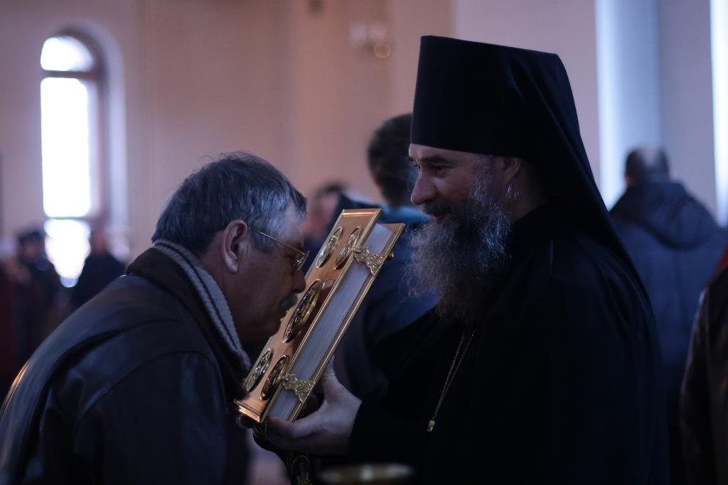 Затем был совершен чин прощения, за которым владыка Амфилохий и духовенство испросили друг у друга и у народа прощения. Благословив верующих на прохождение поприща Великого поста, Преосвященный владыка преподал крест для целования.