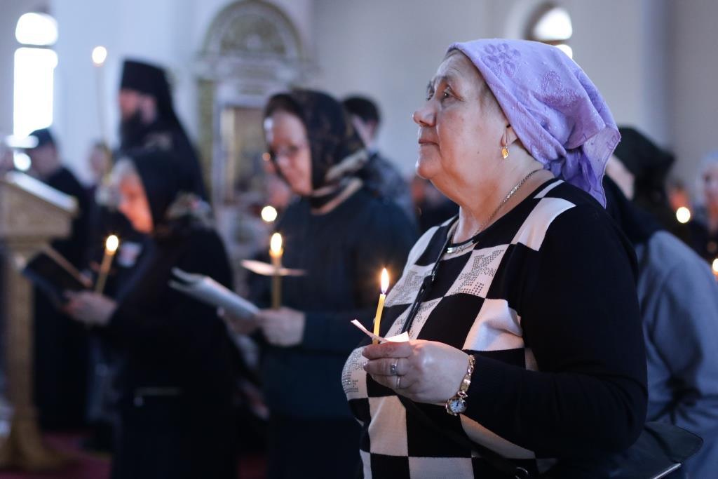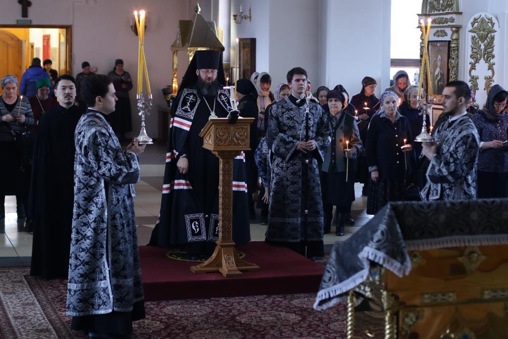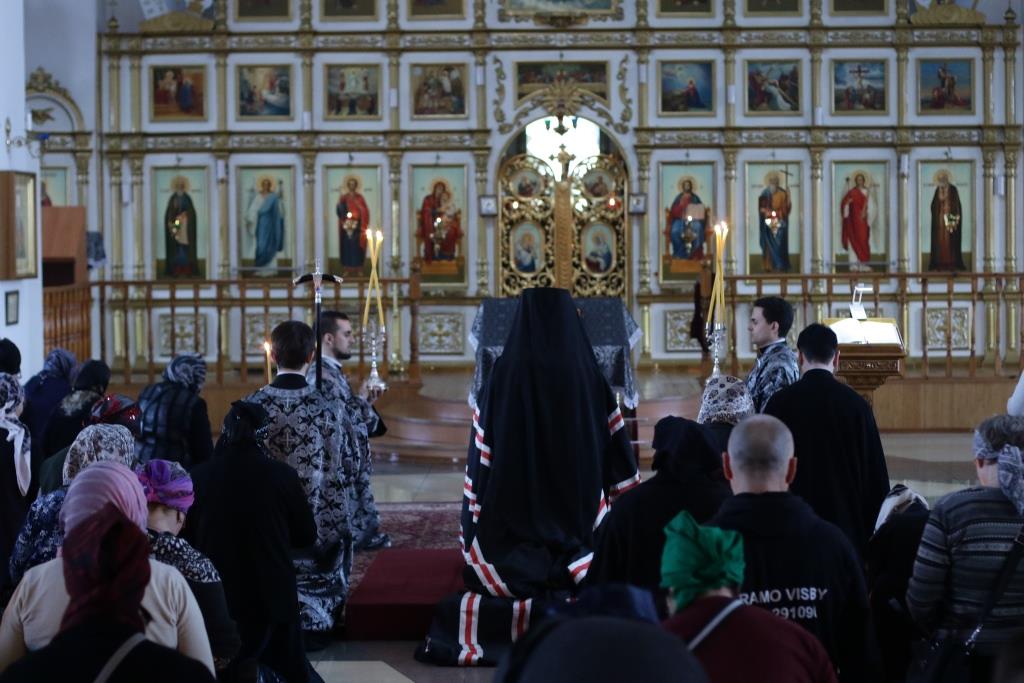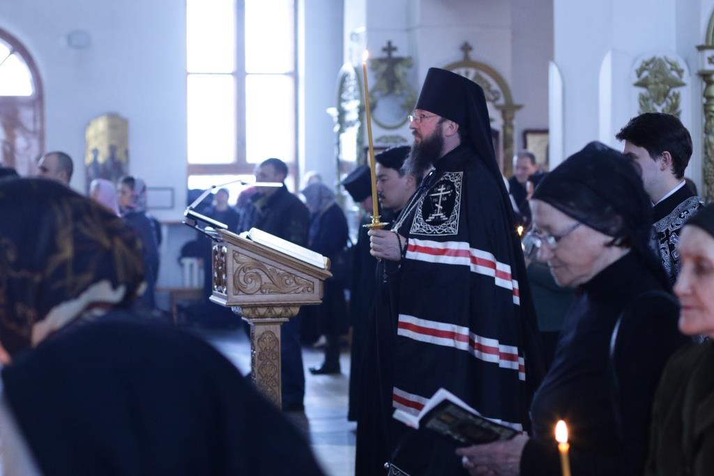В первый день Святой Четыредесятницы в Свято-Андреевском кафедральном соборе города Усть-Каменогорска были совершены уставные великопостные богослужения – утреня, часы, изобразительны и вечерня. Вечером первого дня Великого поста Преосвященнейший епископ Усть-Каменогорский и Семипалатинский Амфилохий возглавил служение Великого повечерия с чтением первой части Великого покаянного канона преподобного Андрея Критского.