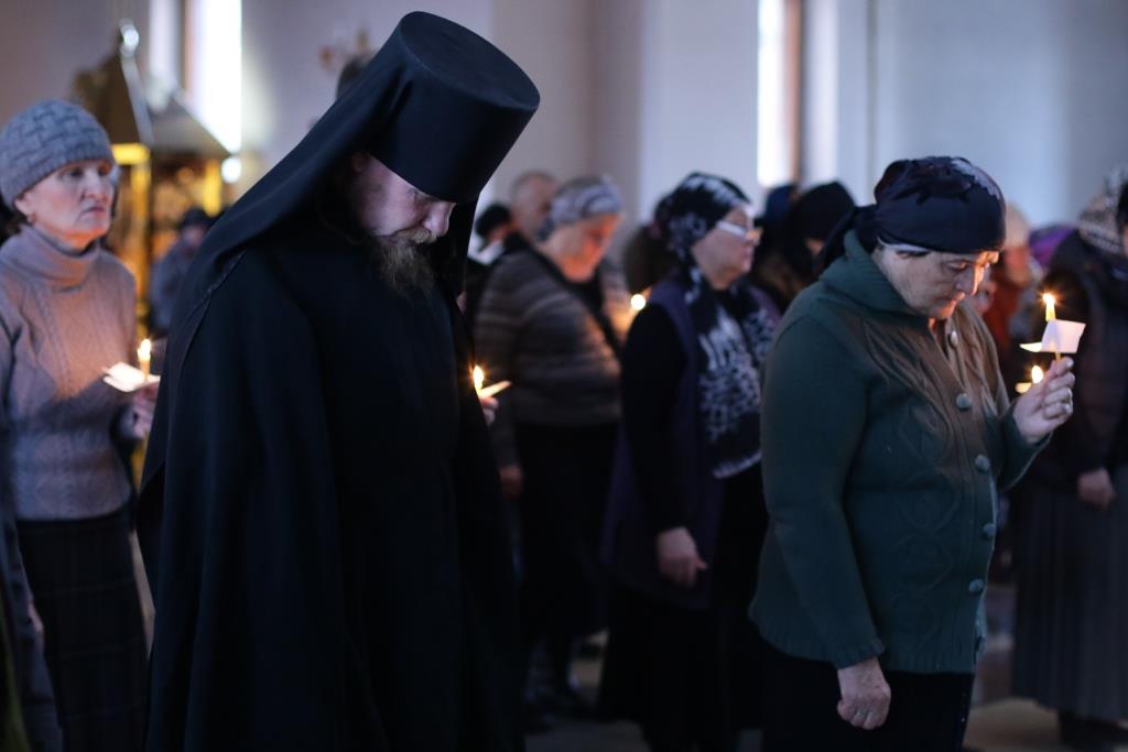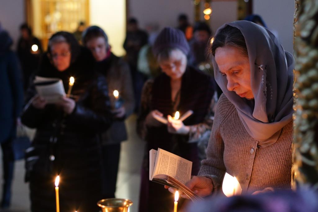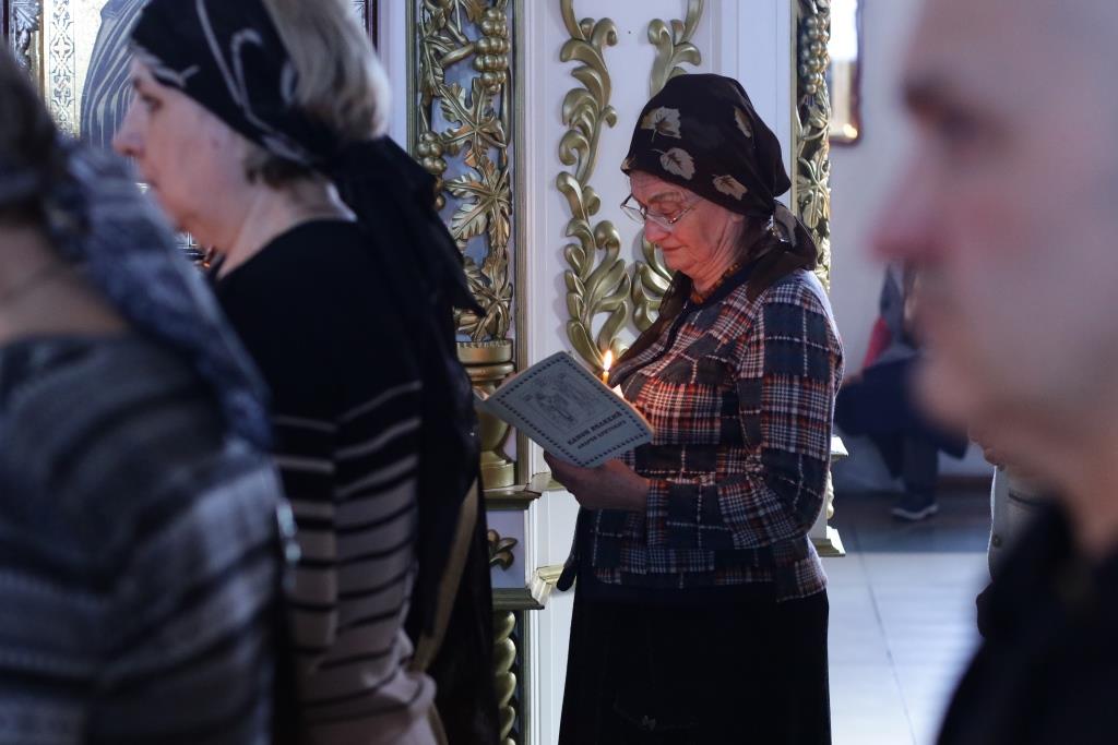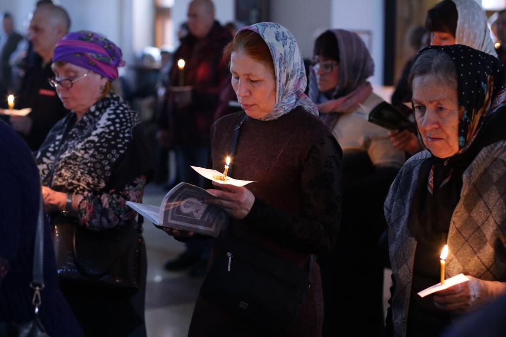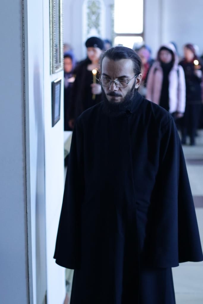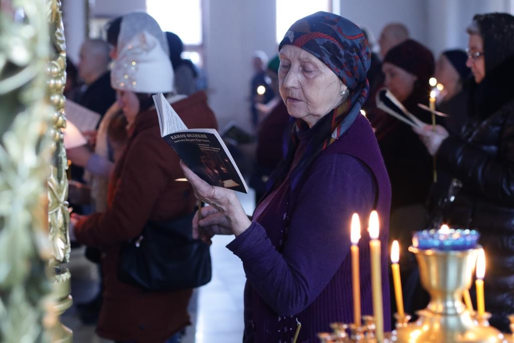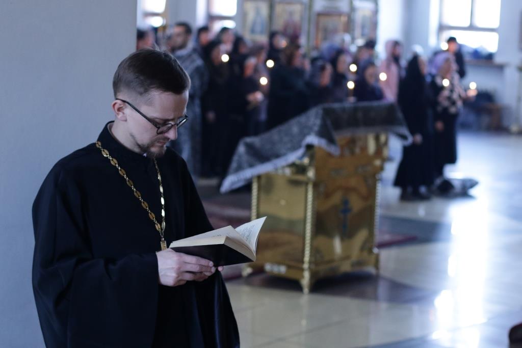 За великопостным Богослужением молились клирики собора, сотрудники епархиального управления, прихожане и паломники. Песнопения повечерия исполнял хор Андреевского кафедрального собора под управлением регента Н. Романцовой.