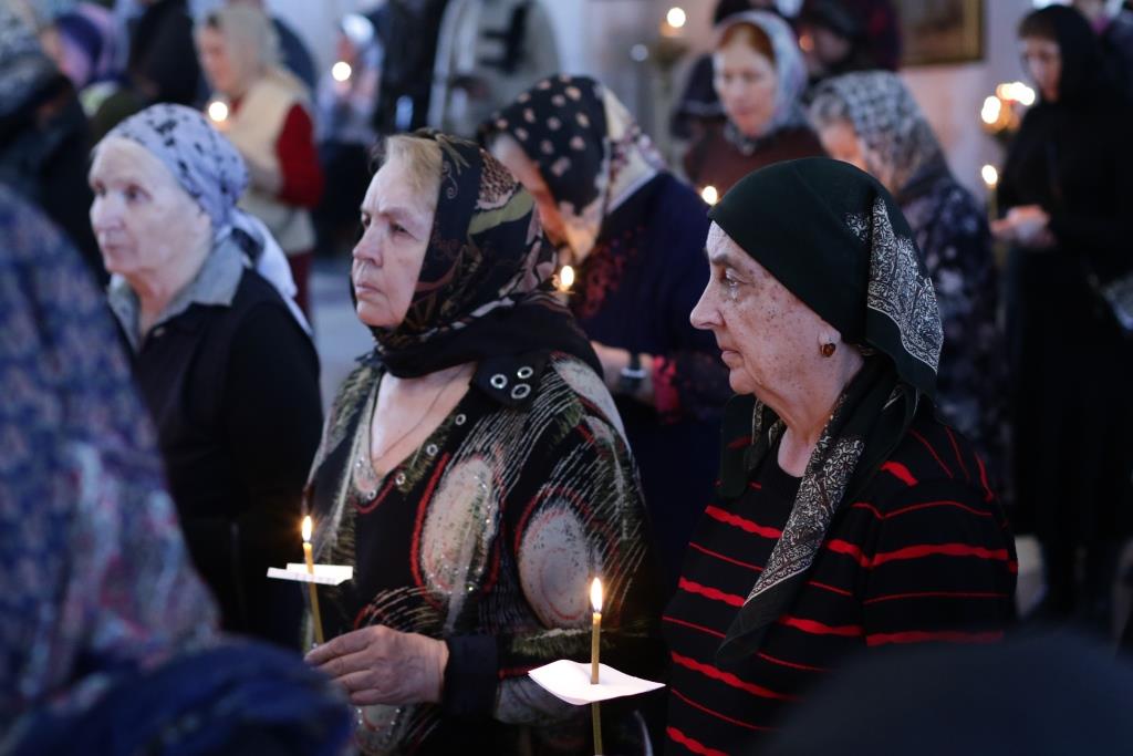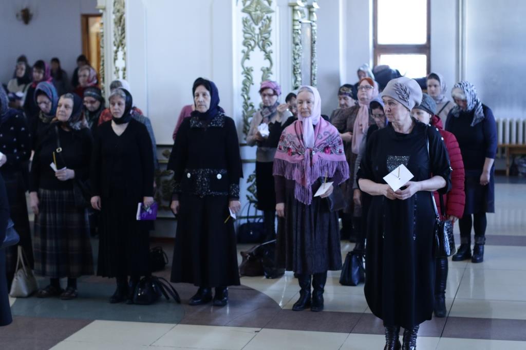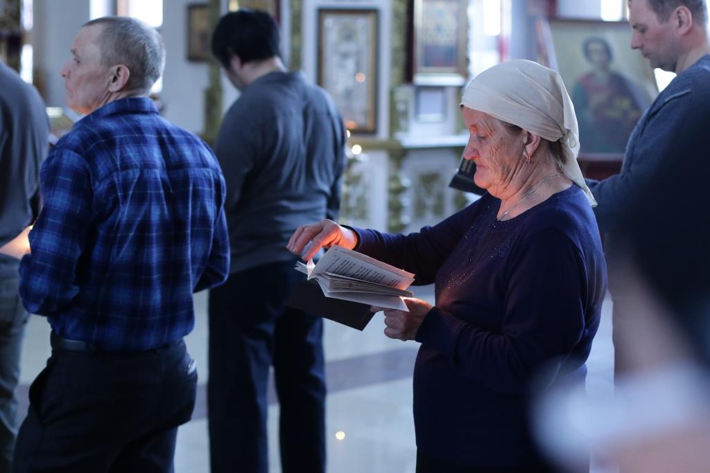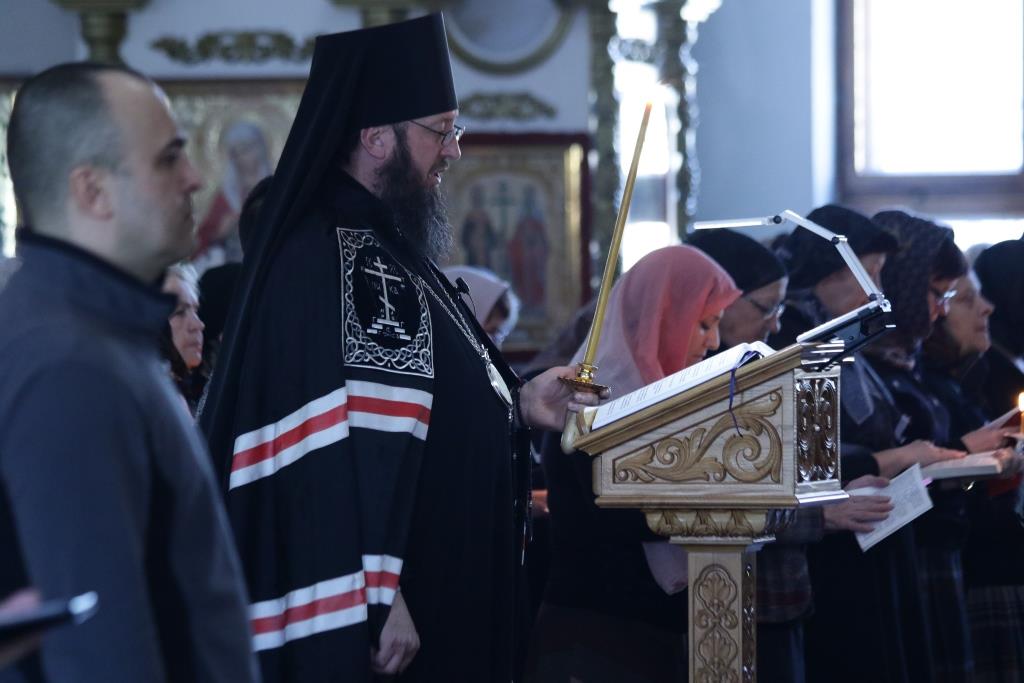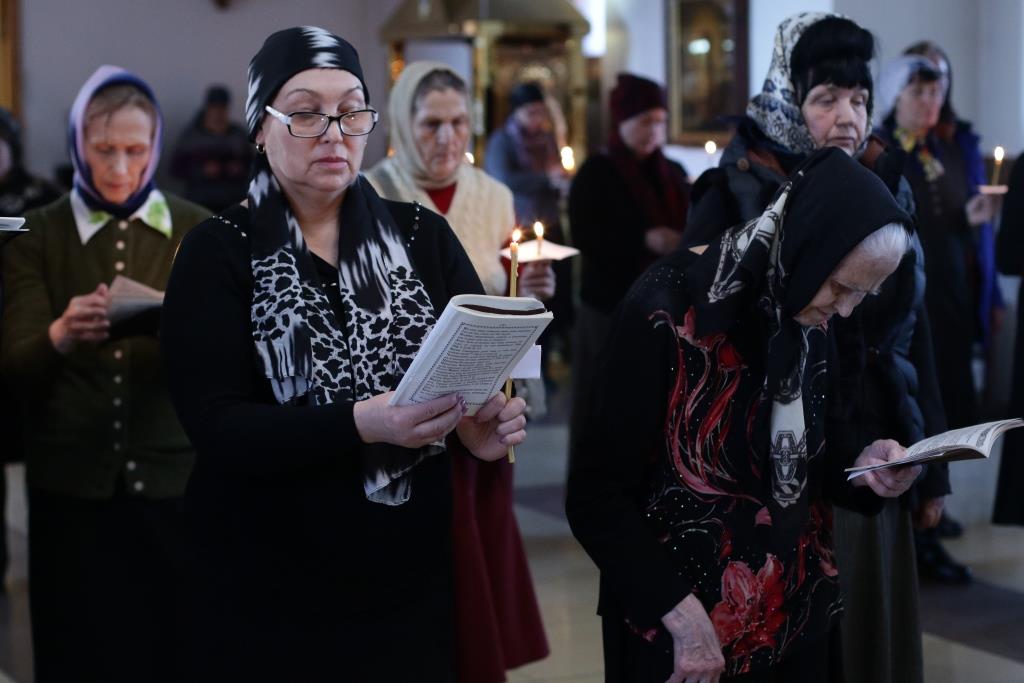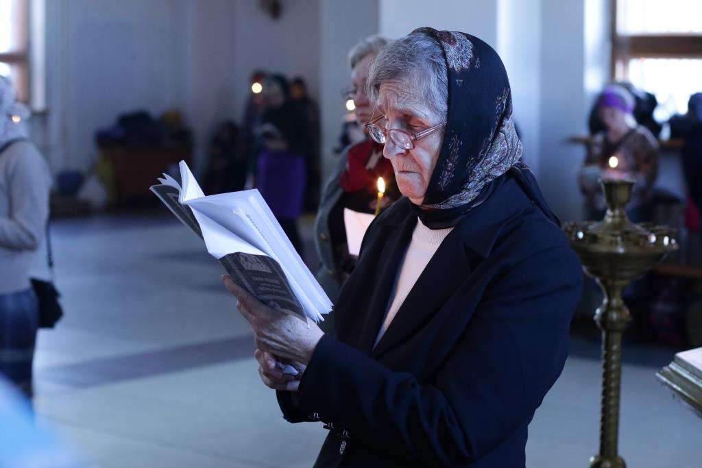 За великопостным Богослужением молились клирики и прихожане Андреевского собора, сотрудники епархиального управления, братия Свято-Троицкого мужского монастыря. Песнопения повечерия исполнял хор Андреевского кафедрального собора под управлением регента Н. Романцовой.