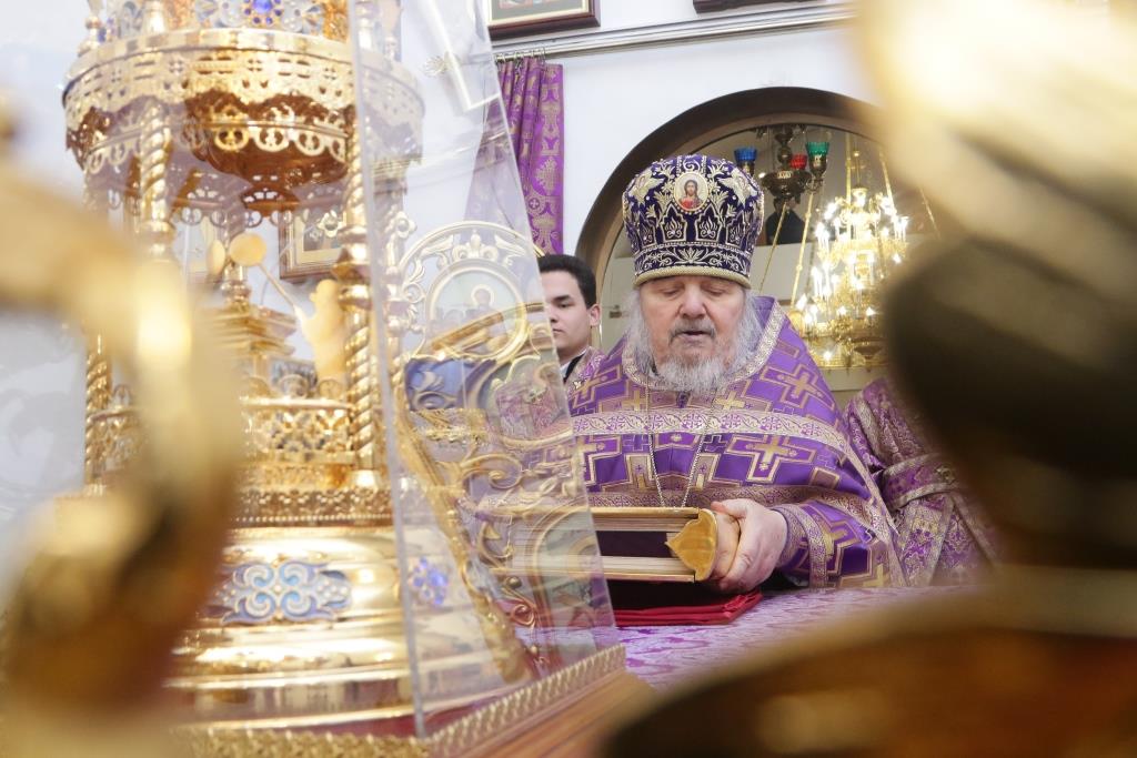 Архипастырю сослужили: духовник епархии архимандрит Спиридон (Теплухин), протоиерей Николай Темирбаев, клирик собора иерей Алексий Клепиков, секретарь епархии диакон Илия Кван, протодиакон Андрей Дудник, диакон Владимир Лаврешин. Песнопения Божественной Литургии исполнял хор Андреевского собора под управлением регента Н. Романцовой.