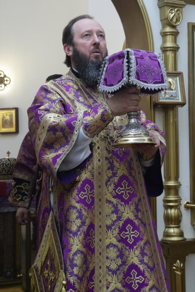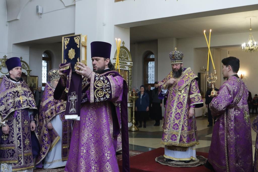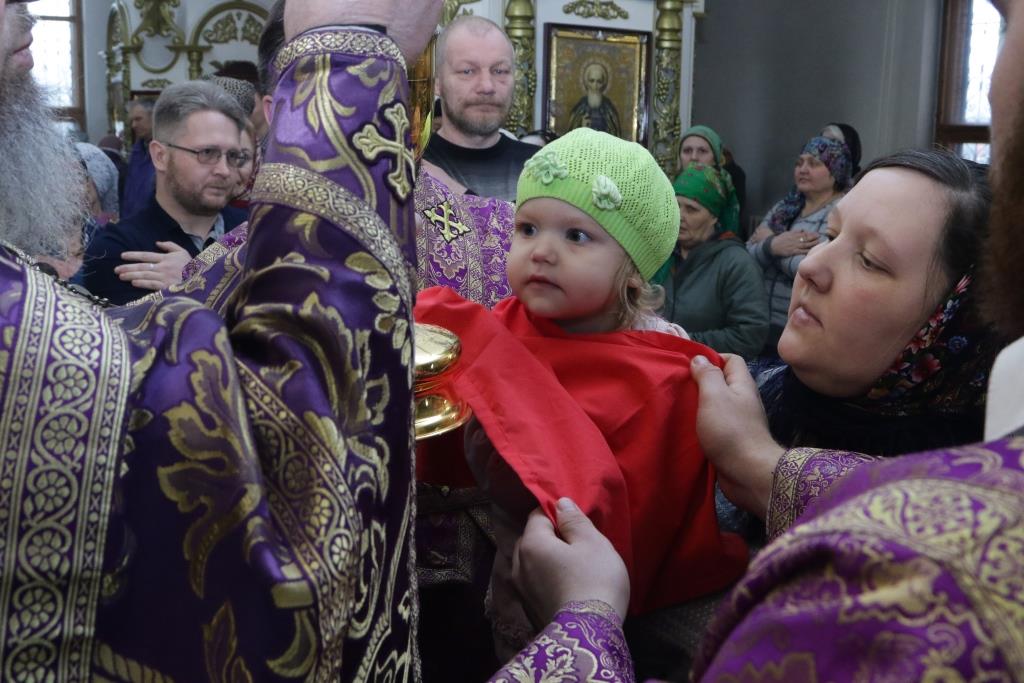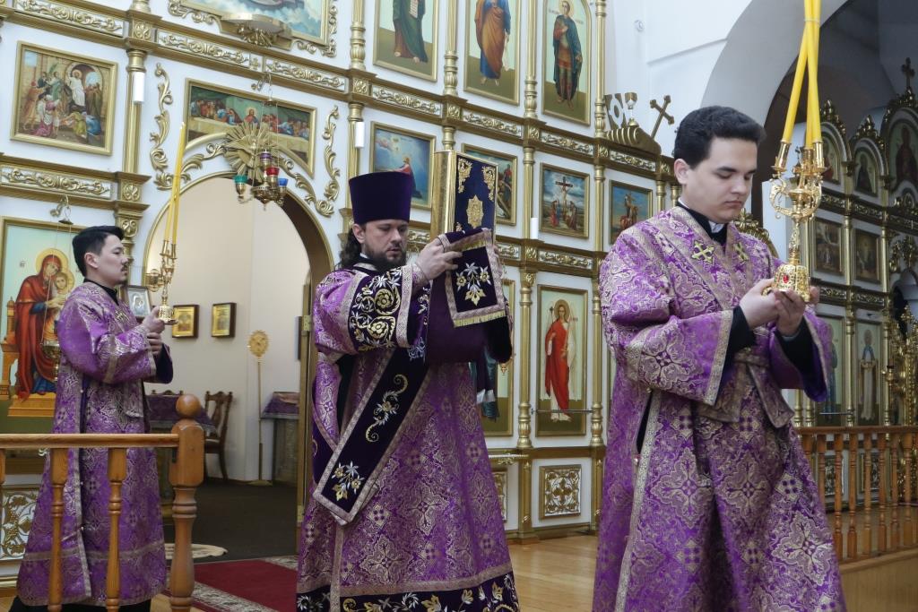 За богослужением молились прихожане главного храма епархии и насельники Свято-Троицкого мужского монастыря. Перед причастием мирян проповедовал иерей Алексий Клепиков.