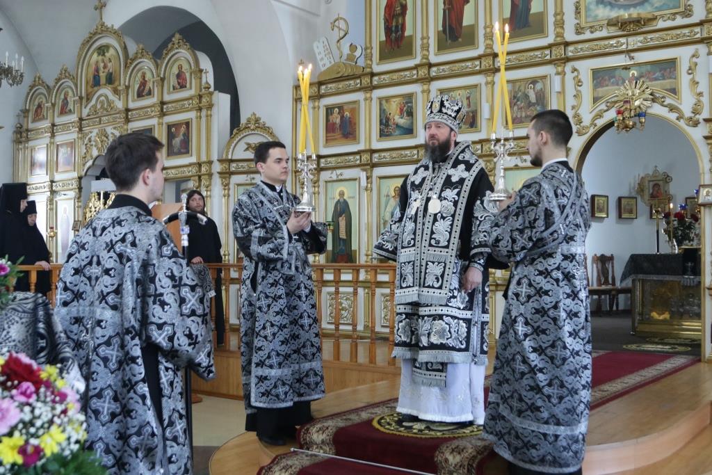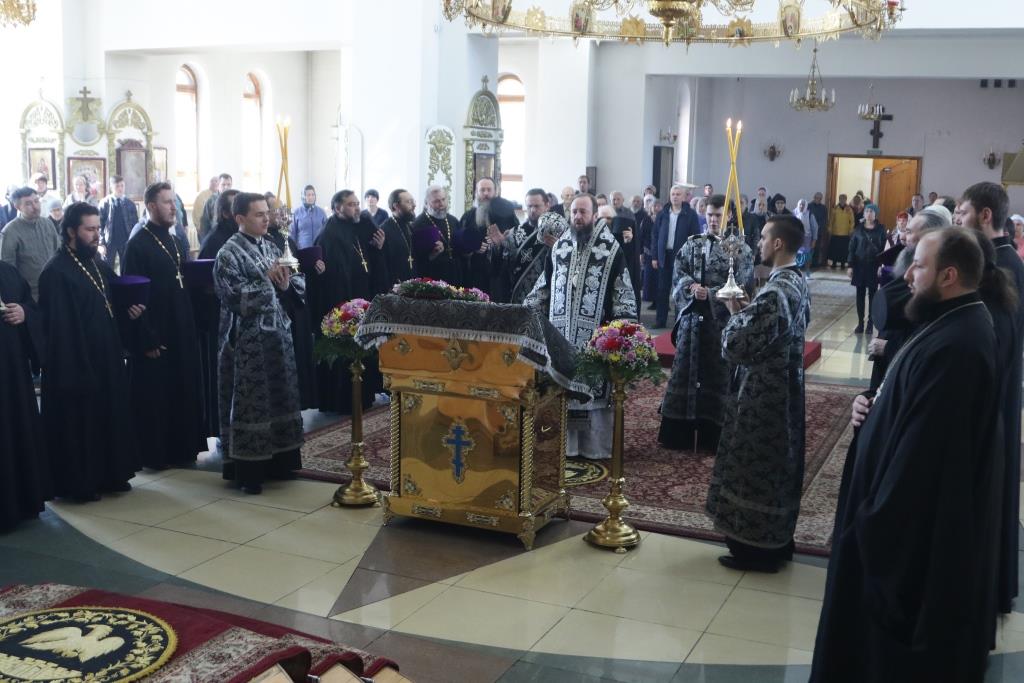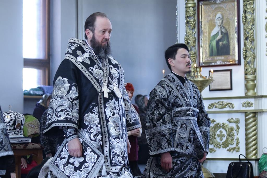 Песнопения Божественной Литургии Преждеосвященных Даров исполнял хор кафедрального собора под управлением регента Н. Романцовой. За богослужением молились: настоятельница Знаменско-Абалацкого женского монастыря города Семипалатинска игумения Марионилла (Помельникова) с сестрами обители, прихожане Андреевского собора и братия Свято-Троицкого мужского монастыря.