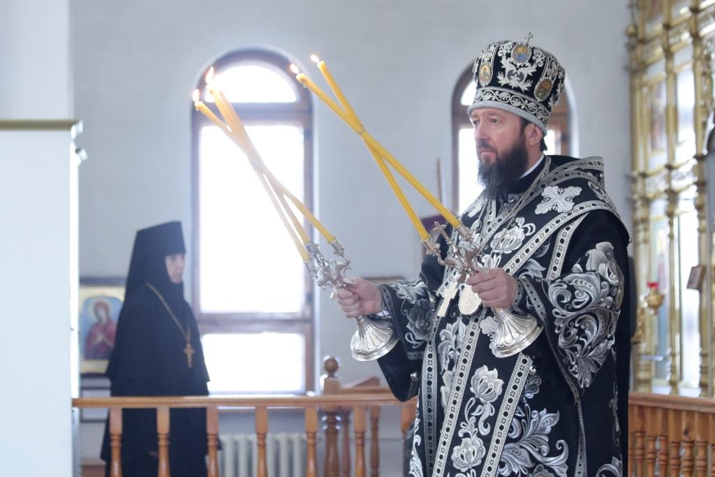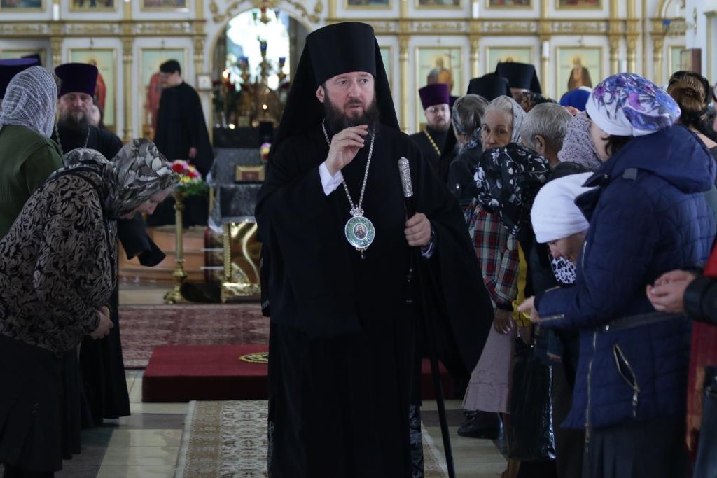 После окончания великопостной Литургии было совершено поклонение Честному Кресту Господню, и затем епископ Амфилохий обратился к духовенству и молящимся со словами Архипастырской проповеди.