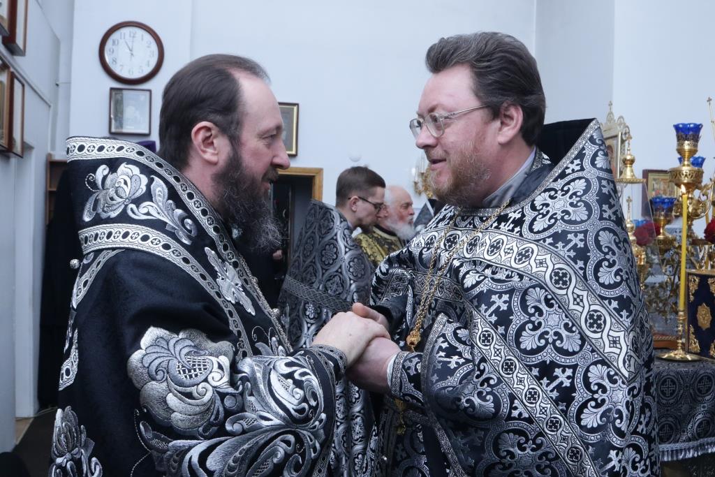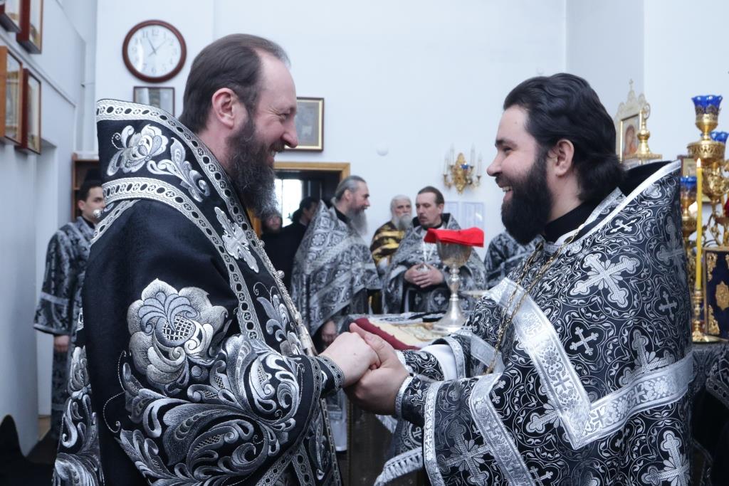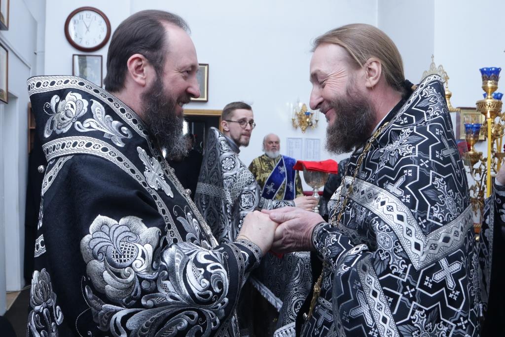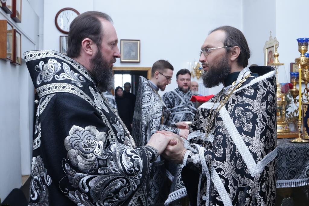 Соборное служение Литургии Преждеосвященных Даров завершилось трапезой в братском корпусе Свято-Троицкого мужского монастыря.