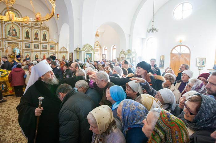 Митрополит Александр поздравил собравшихся с престольным праздником главного храма епархии и принесением на землю Рудного Алтая мощей святителя и врача Луки.