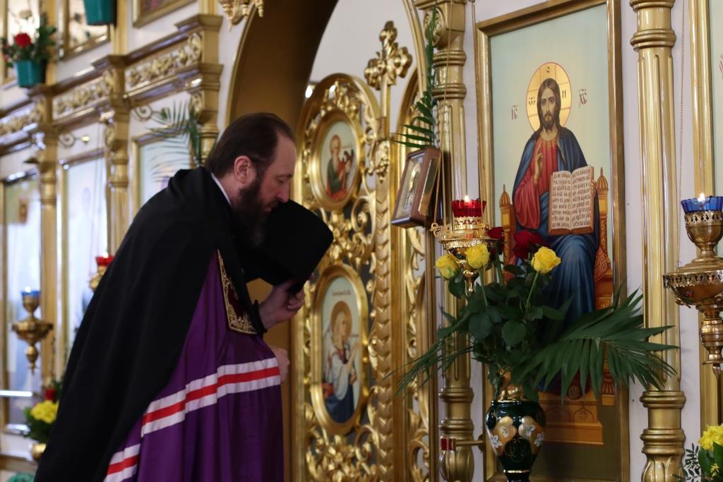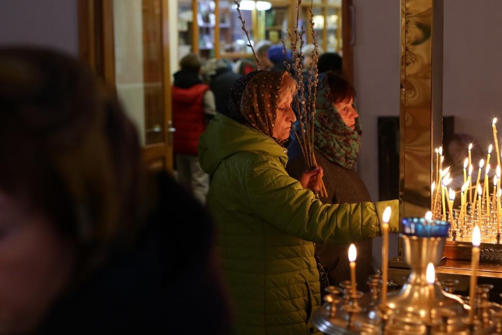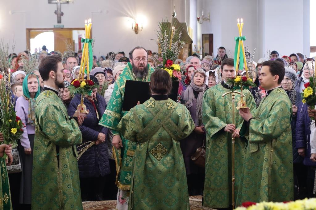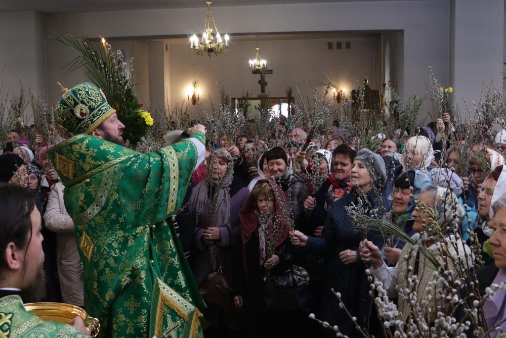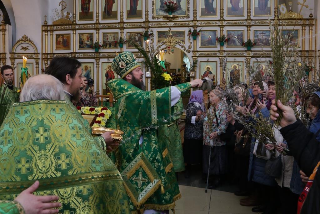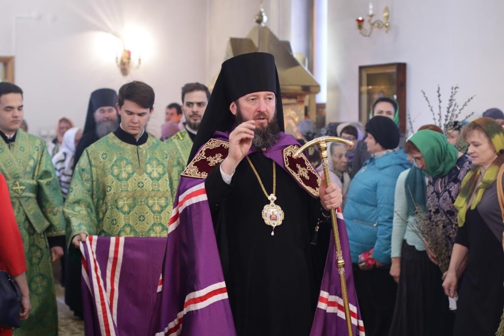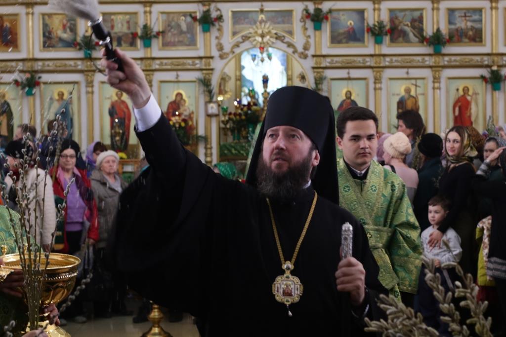 После заамвонной молитвы было совершено освящение ветвей верб, в завершение которого Преосвященнейший епископ Амфилохий обратился к народу Божию со словами поздравления и Архипастырского наставления.