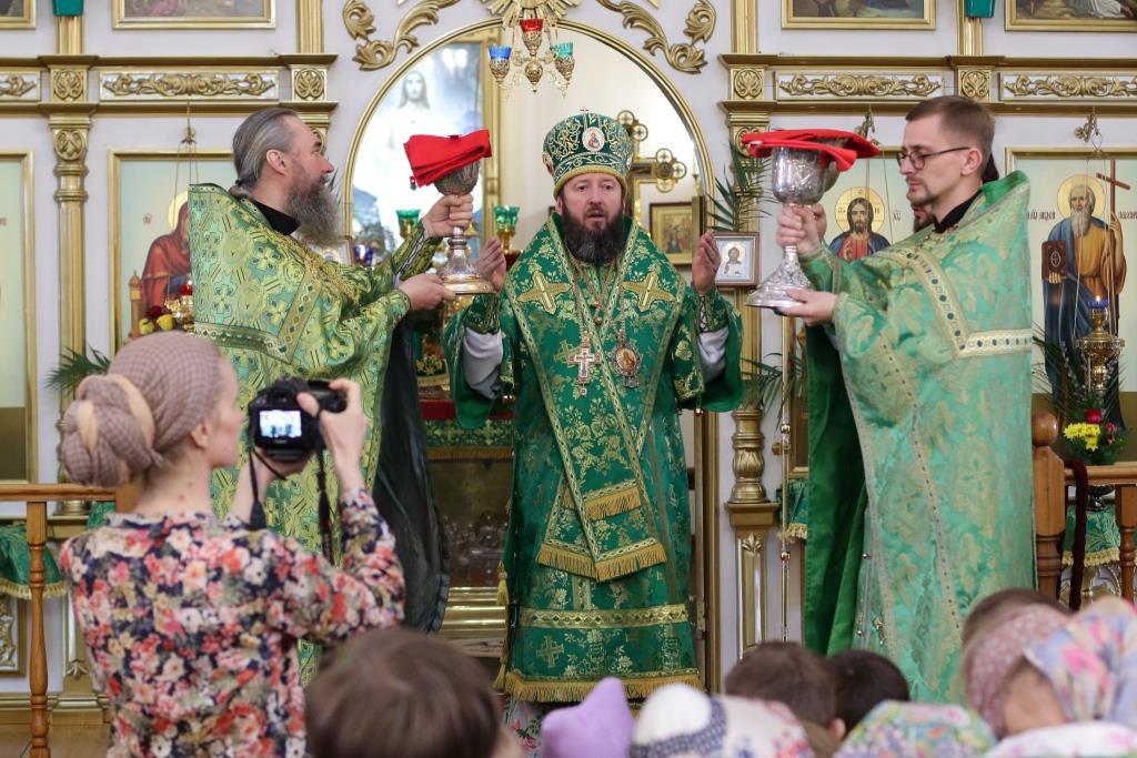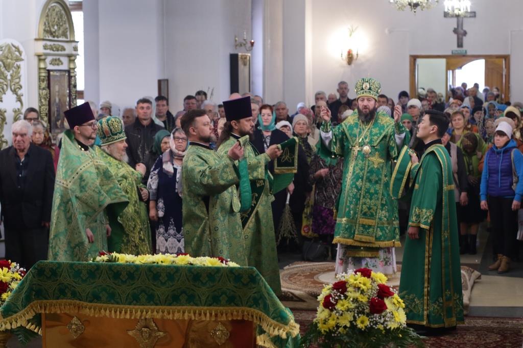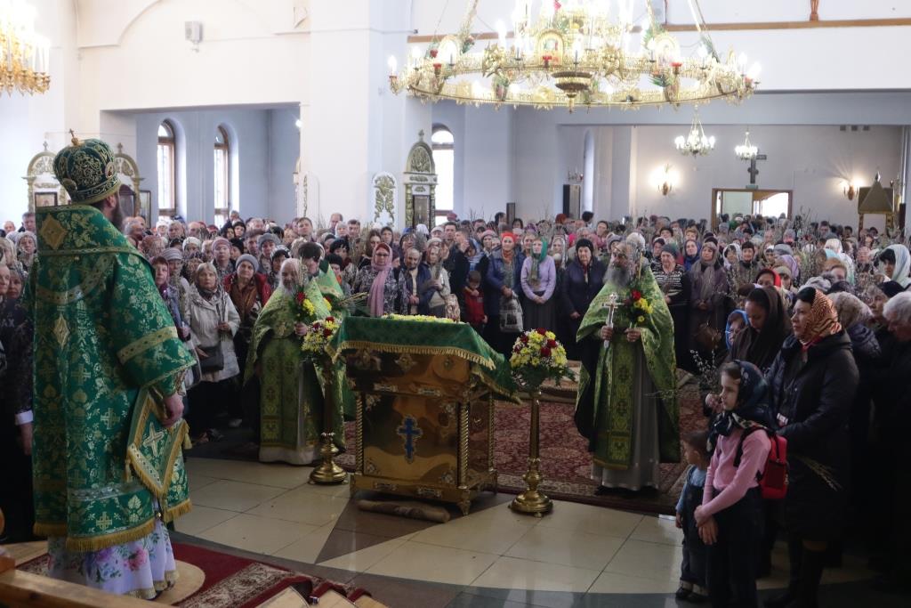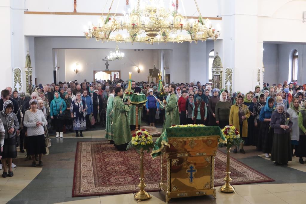 За воскресным богослужением молились прихожане главного храма епархии, насельники Свято-Троицкого мужского монастыря, сотрудники епархиального управления, преподаватели и воспитанники Центральной воскресной школы. Перед причастием мирян проповедовал ключарь кафедрального собора. По благочестивой традиции, множество православных христиан в этот день приобщились Святых Христовых Таин.
