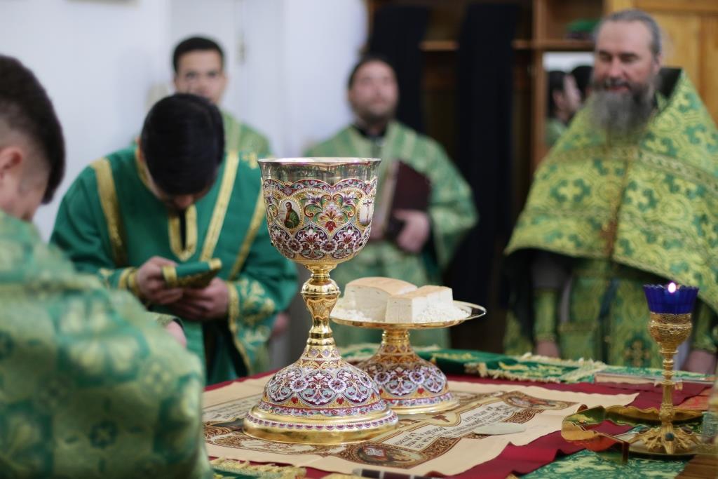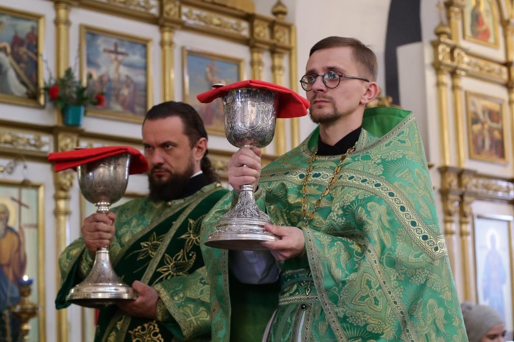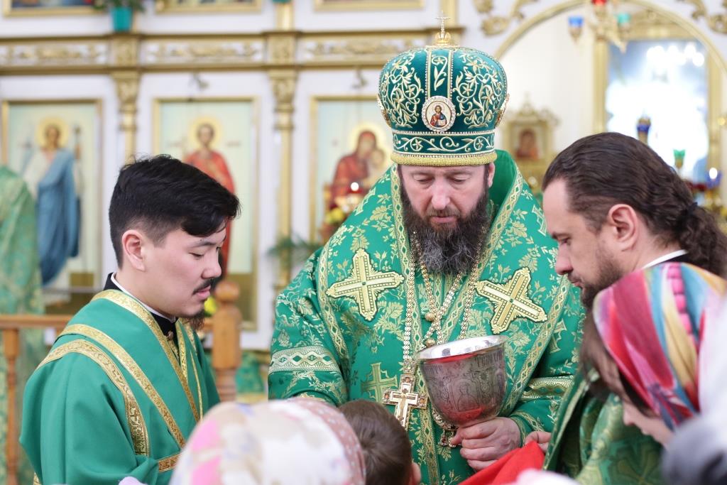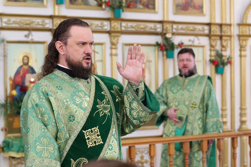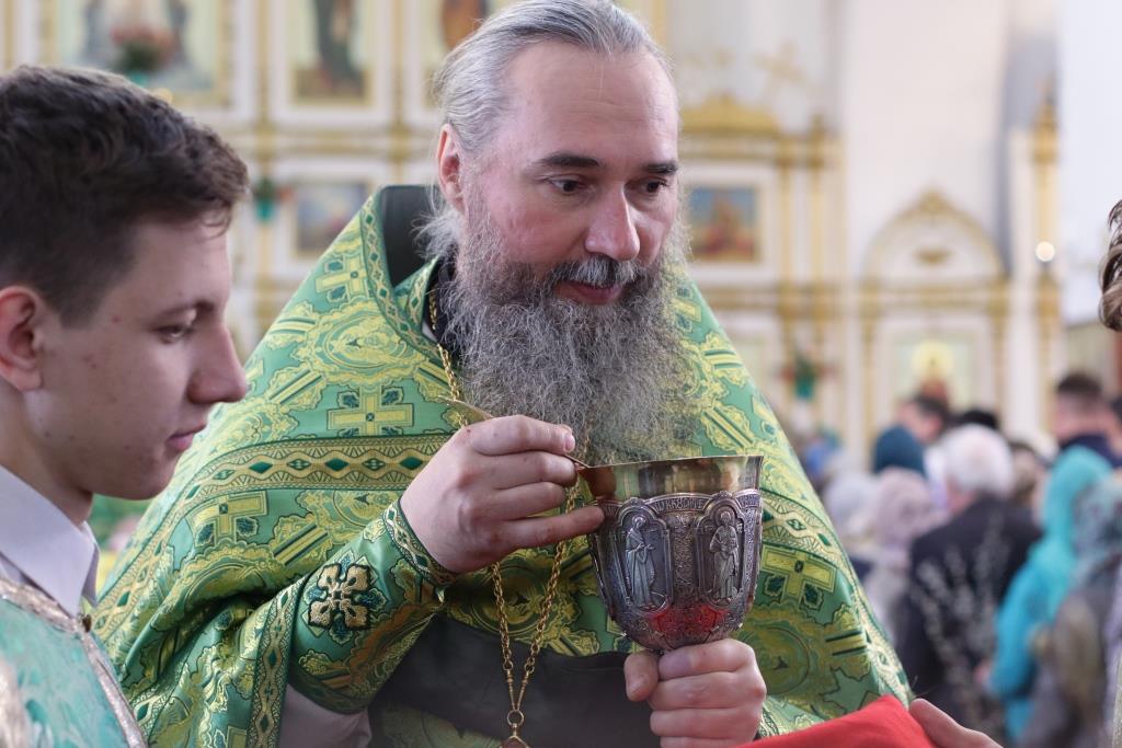 За воскресным богослужением молились прихожане главного храма епархии, насельники Свято-Троицкого мужского монастыря, сотрудники епархиального управления, преподаватели и воспитанники Центральной воскресной школы. Перед причастием мирян проповедовал ключарь кафедрального собора. По благочестивой традиции, множество православных христиан в этот день приобщились Святых Христовых Таин.