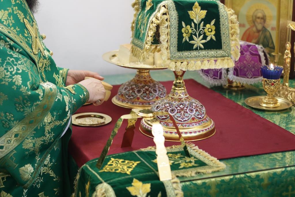 В праздничный день Преосвященнейший епископ Усть-Каменогорский и Семипалатинский Амфилохий совершил Божественную Литургию святителя Иоанна Златоуста в Свято-Андреевском кафедральном соборе города Усть-Каменогорска.