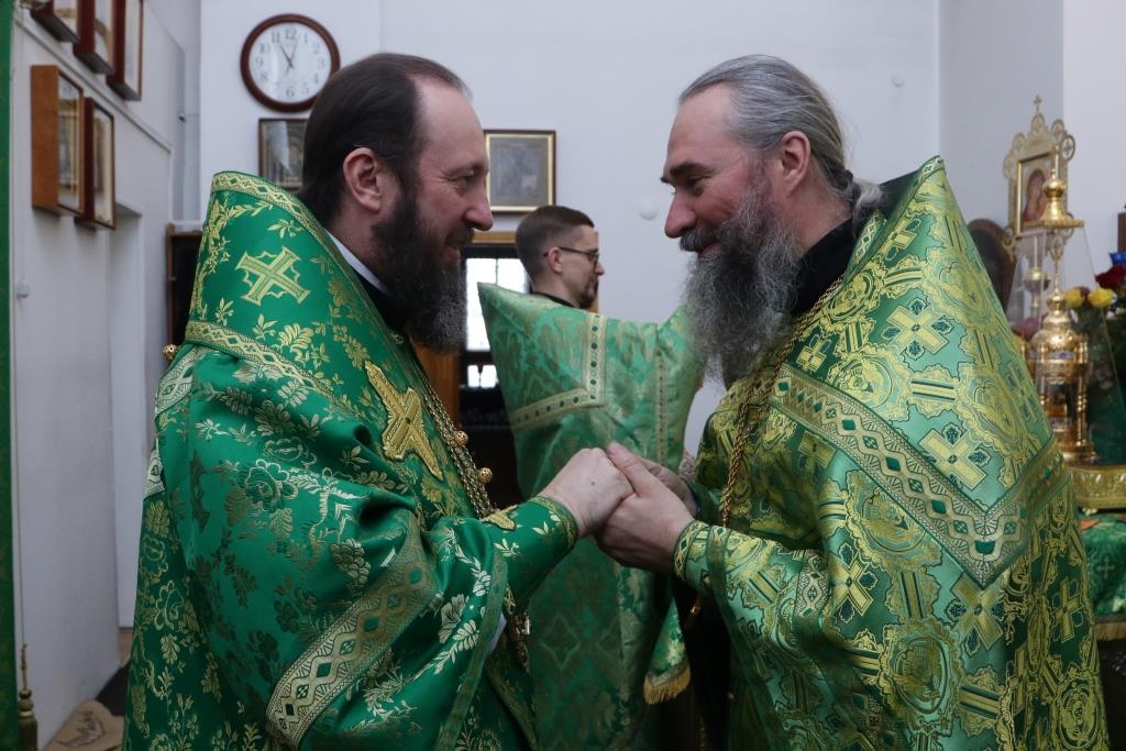 Архипастырю сослужили: духовник епархии архимандрит Спиридон (Теплухин), ключарь кафедрального собора иеромонах Никодим (Авдеев), клирик собора иерей Константин Дьяков, секретарь епархии диакон Илия Кван, протодиакон Андрей Дудник, диакон Владимир Лаврешин. Песнопения праздника и Божественной Литургии исполнял хор Андреевского собора под управлением регента Н. Романцовой.