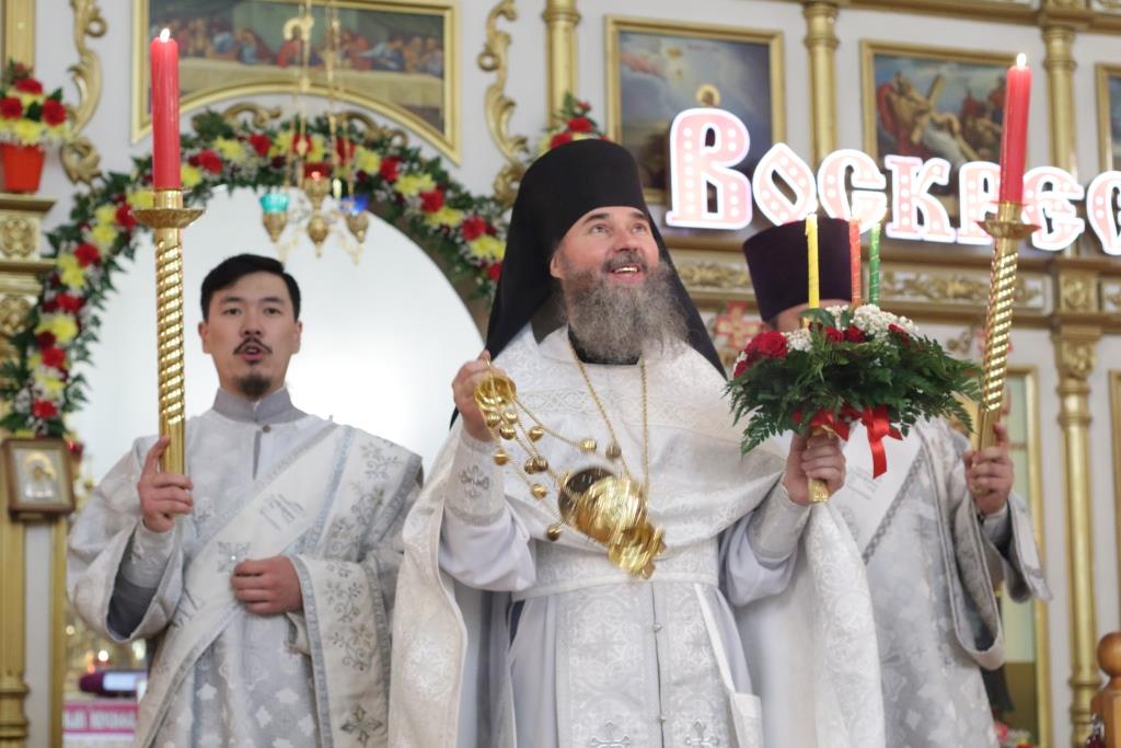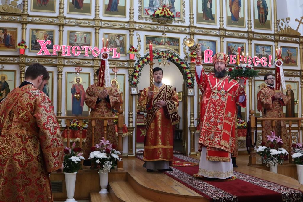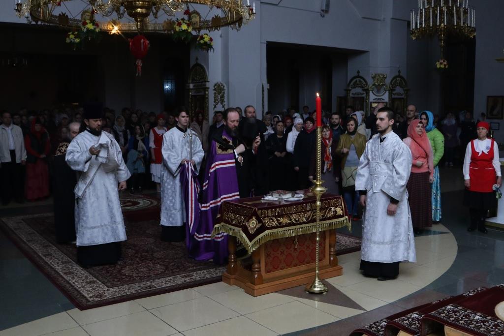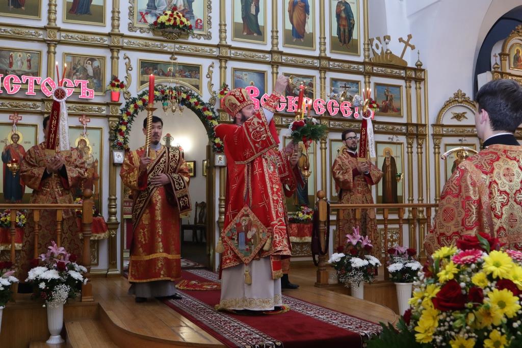 Пасхальное богослужение посетили многочисленные верующие, представители городской общественности, сибирское казачество. Песнопения Пасхи Христовой и Божественной Литургии исполнял хор Андреевского собора под управлением регента Н. Романцовой. Многие песнопения были исполнены соборным духовенством.