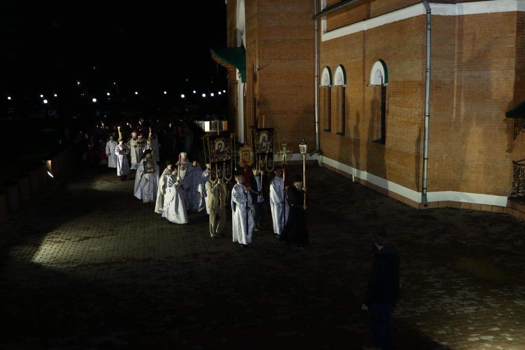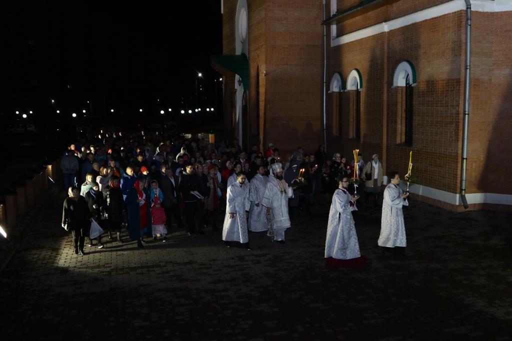 Под пение стихиры «Воскресение Твое, Христе Спасе» вокруг храма был совершен крестный ход. На Пасхальной заутрене иеромонах Никодим (Авдеев) прочитал традиционное Слово огласительное святителя Иоанна Златоуста на Святую Пасху. На запричастном стихе было оглашено Пасхальное послание Святейшего Патриарха Кирилла архипастырям, пастырям, монашествующим и всем верным чадам Русской Православной Церкви.