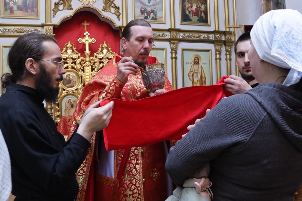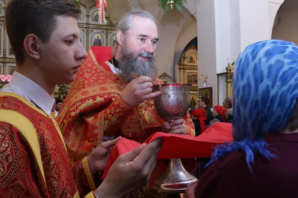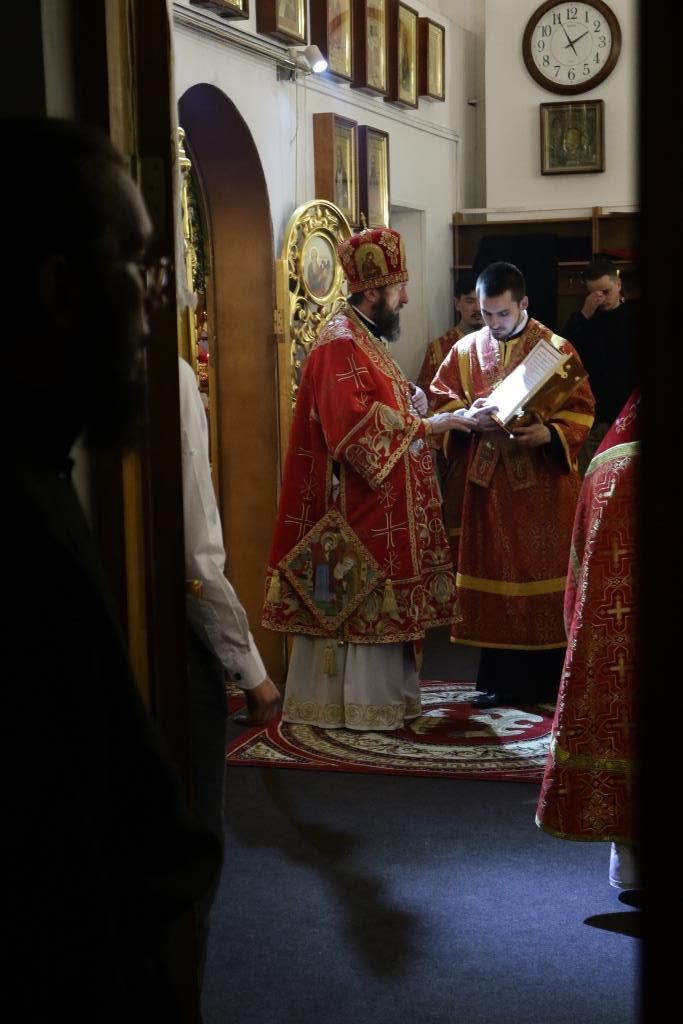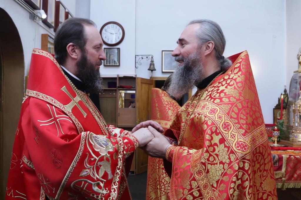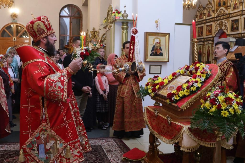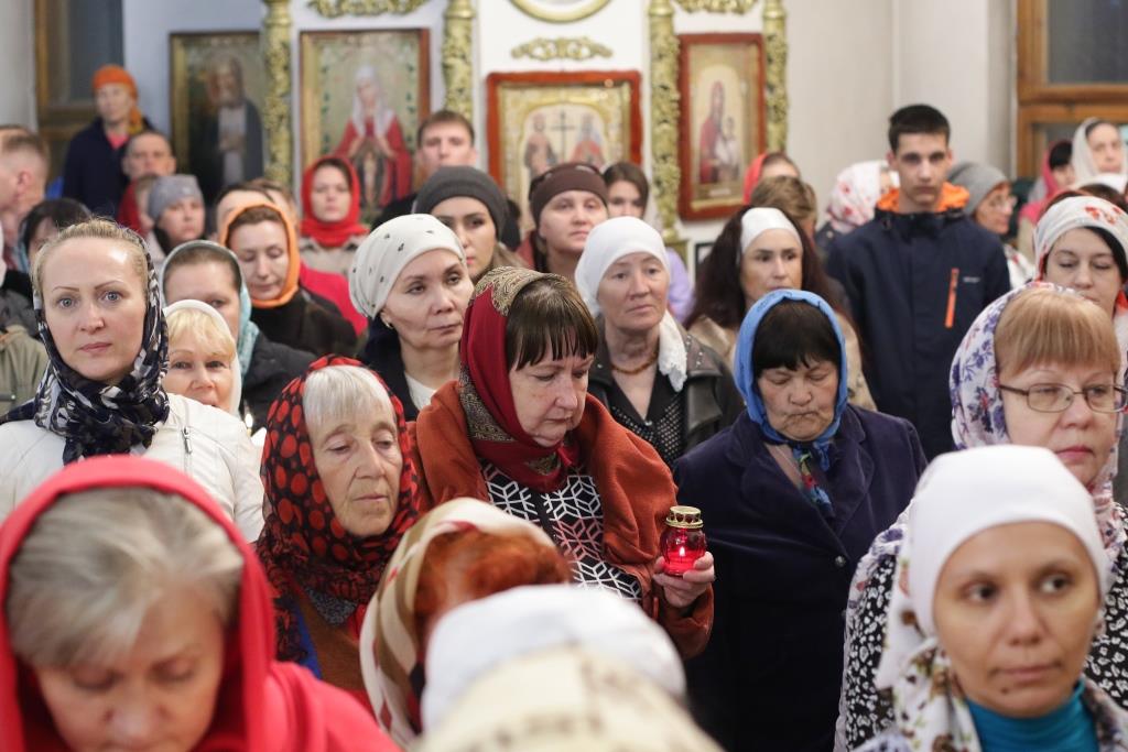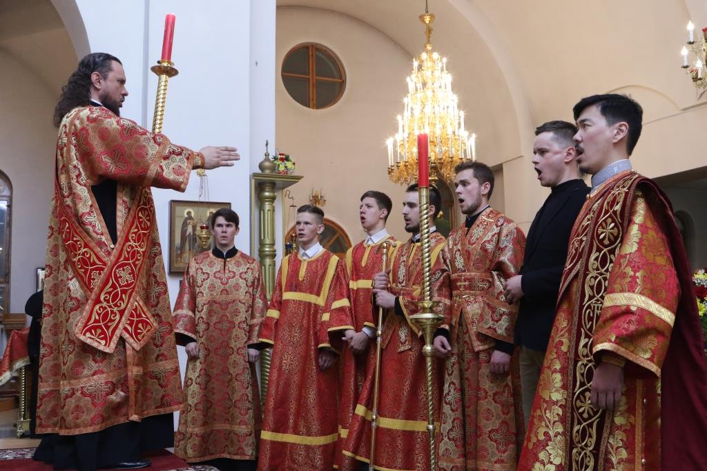 Его Преосвященству сослужили: духовник епархии архимандрит Спиридон (Теплухин), ключарь Андреевского собора иеромонах Никодим (Авдеев), клирики собора иерей Алексий Клепиков и иерей Константин Дьяков, секретарь епархии диакон Илия Кван, протодиакон Андрей Дудник.