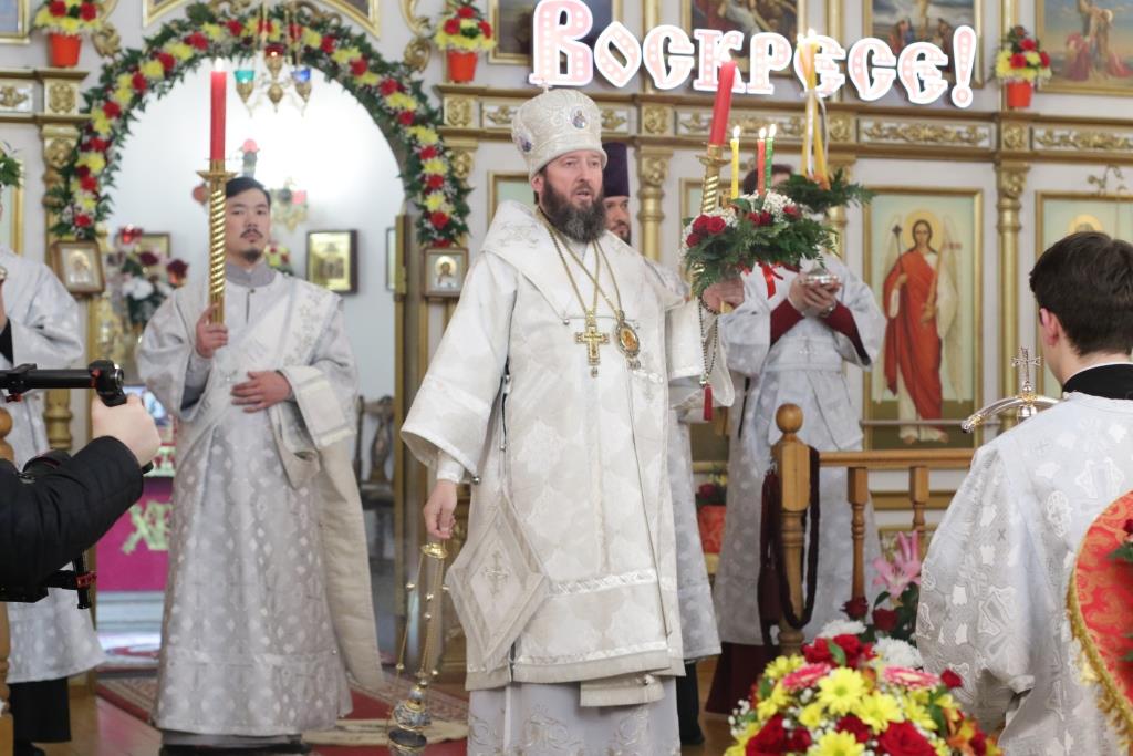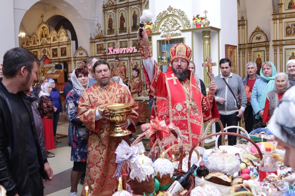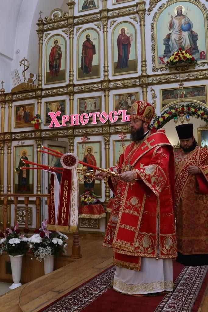 После окончания Пасхального богослужения Преосвященнейший Владыка преподал прихожанам Божие благословение и пожелал всем мира, радости и спасения души.