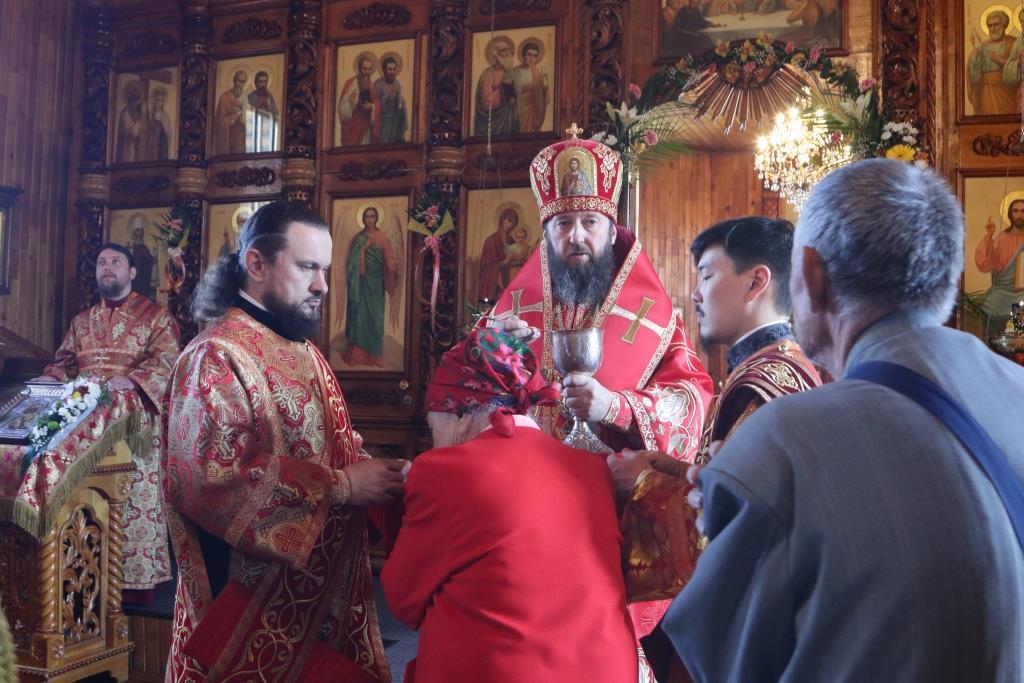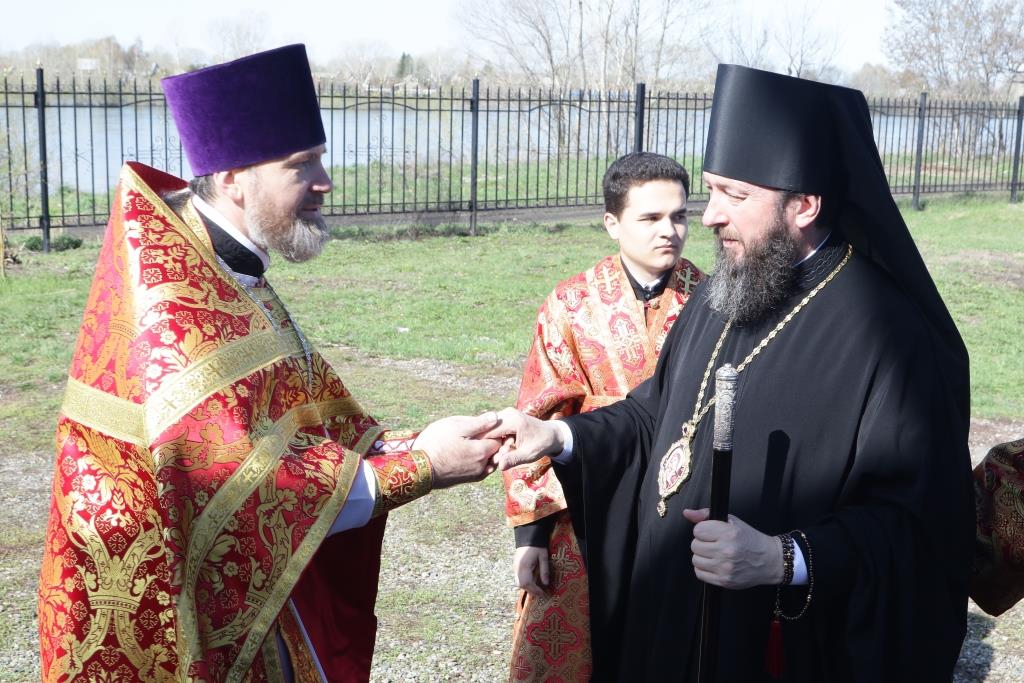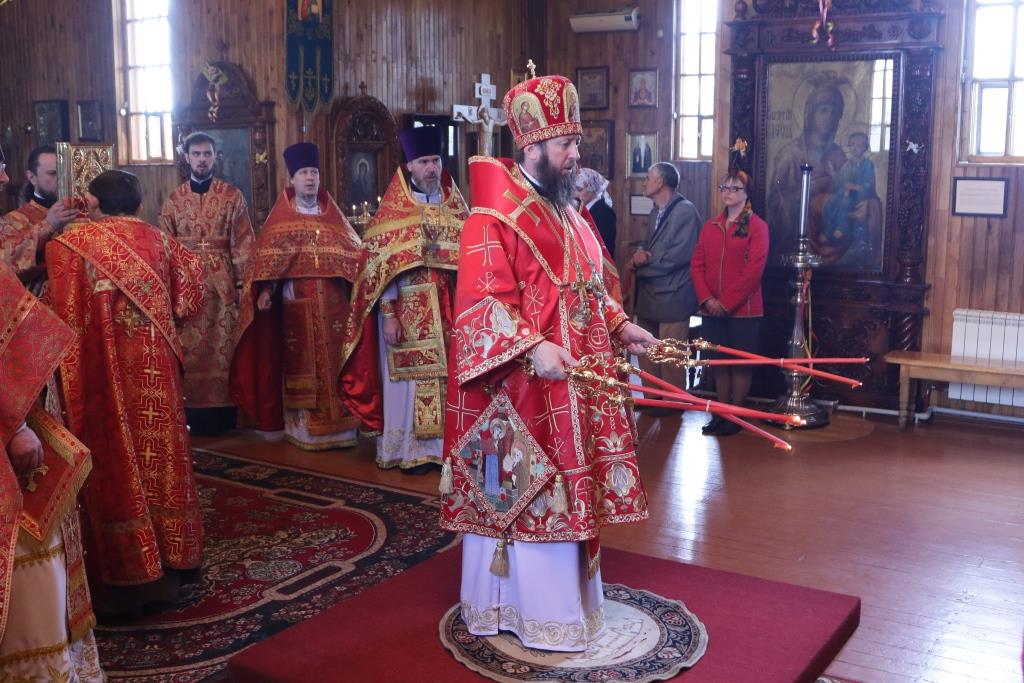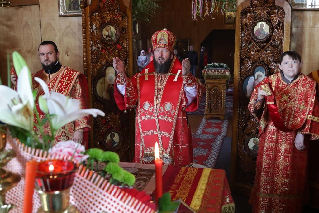 После проповеди Преосвященнейший Владыка поздравил прихожан с днем Светлого Христова Воскресения и пожелал всем милости и щедрот от поправшего смерть Господа. Божественная Литургия завершилась братской трапезой.