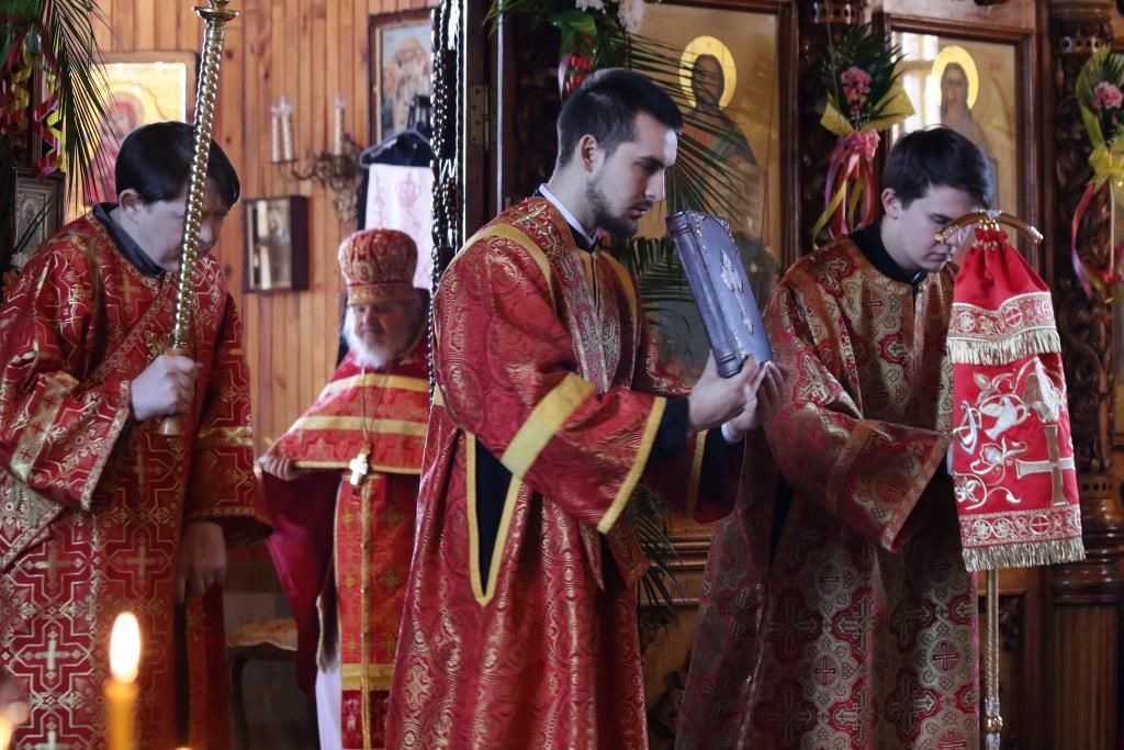 Справка: особенности богослужений Светлой седмицы. Вся седмица, называемая Светлой, есть как бы один великий праздник Пасхи. Отцы Церкви и 66-е правило VI Вселенского Собора повелевают верующим в течение всей Светлой седмицы в храмах упражняться в псалмах и пениях духовных, торжествуя и радуясь о Воскресшем Господе. Богослужения на Светлой седмице совершаются при открытых царских вратах — в знак того, что Господь Своим Воскресением отверз верующим двери рая. Они остаются открытыми и после богослужения, начиная с первого дня Пасхи, во всю седмицу и закрываются только в субботу перед 9-м часом. Во Святую Пасху, как и в Светлую седмицу, нет места для рыданий о своих грехах и немощах. Все покаянные и просительные молитвословия из богослужения исключены: не стихословится Псалтирь, опускаются и почти все отдельные псалмы, входящие в состав богослужения в качестве неизменяемых частей. Даже "принесенное с неба" ангельское славословие о Триедином Боге - Трисвятое, обычно возносимое на каждой из служб суточного круга, во всю Пасхальную седмицу не произносится ни разу ни на общественном богослужении, ни на частных требах, ни в келейной молитве. Панихиды на Светлой седмице служить не полагается, а отпевание совершается по особому чину и большей частью состоит из радостных пасхальных песнопений. Во всю Пасхальную седмицу начало и конец церковных служб совершается так же, как и в первый день (но крестный ход бывает в последующие дни не перед утреней, а после литургии). На утрени к каждой песни пасхального канона прибавляются Богородичны (творение Феофана и Иосифа), напечатанные в Цветной Триоди. Каждение священник совершает с Крестом и трисвечником (или свечой), а малые ектении произносятся только после 3-й, 6-й и 9-й песни. Литургия совершается точно так же, как и в первый день Пасхи. Поются праздничные антифоны, произносится входной стих, вместо Трисвятого поется Елицы во Христа крестистеся, задостойник - Светися, светися, новый Иерусалиме. Прокимен, Апостол, Аллилуиарий и Евангелие на каждый день Светлой седмицы – особые, причем Евангелие читается только одним диаконом (то есть на одном языке).