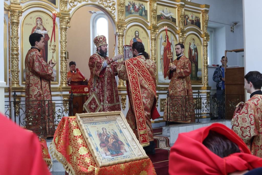После заамвонной молитвы было совершено славление Воскресшему Христу. Божественная Литургия завершилась словами Архипастырской проповеди.