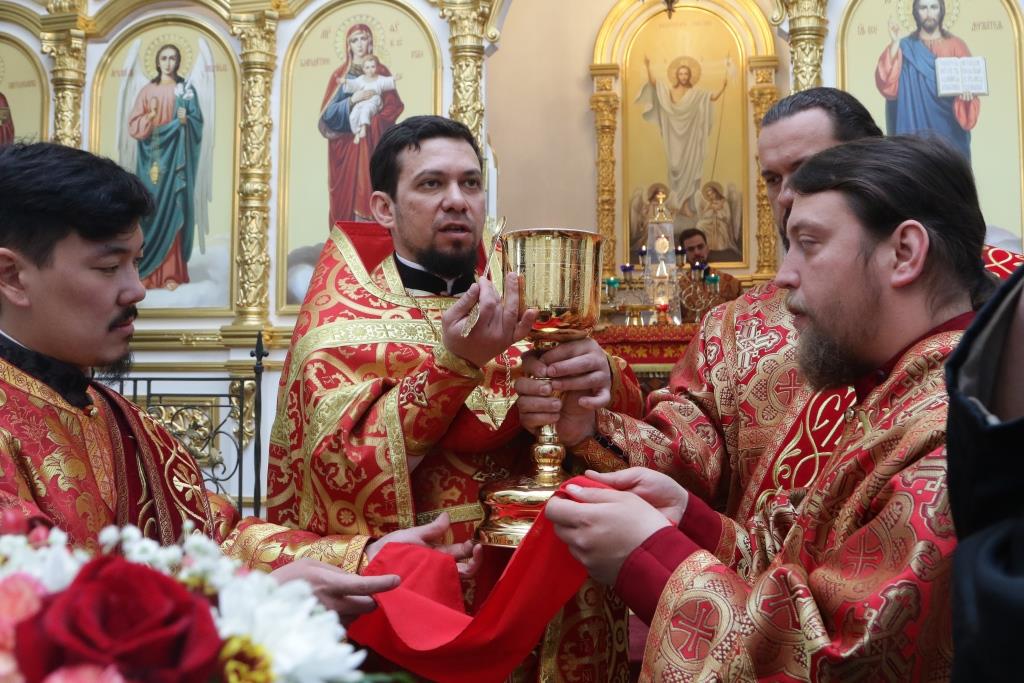 В среду Светлой седмицы Преосвященнейший епископ Усть-Каменогорский и Семипалатинский Амфилохий совершил Божественную Литургию святителя Иоанна Златоуста пасхальным чином в Свято-Зиновьевском города Усть-Каменогорска. Архипастырю сослужили: духовник епархии архимандрит Спиридон (Теплухин), благочинный Усть-Каменогорского церковного округа иерей Алексий Анищенко, ключарь Андреевского кафедрального собора иеромонах Никодим (Авдеев), настоятель храма иерей Вячеслав Гутов; секретарь епархии диакон Илия Кван, протодиакон Андрей Дудник.