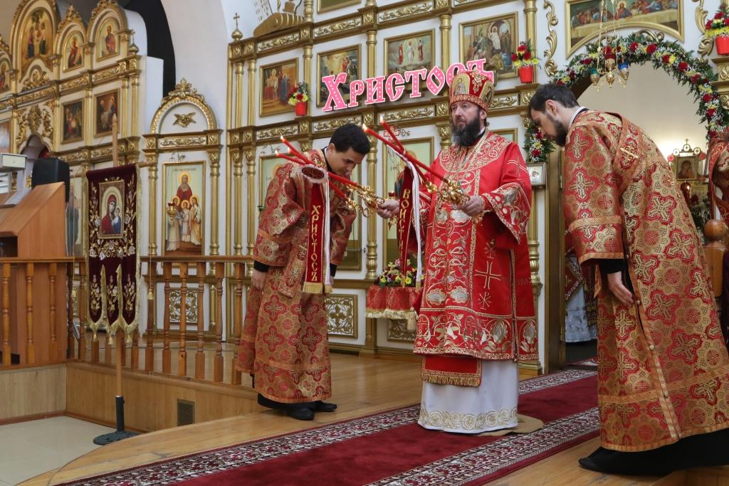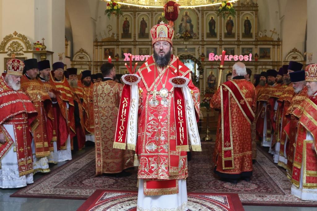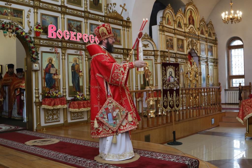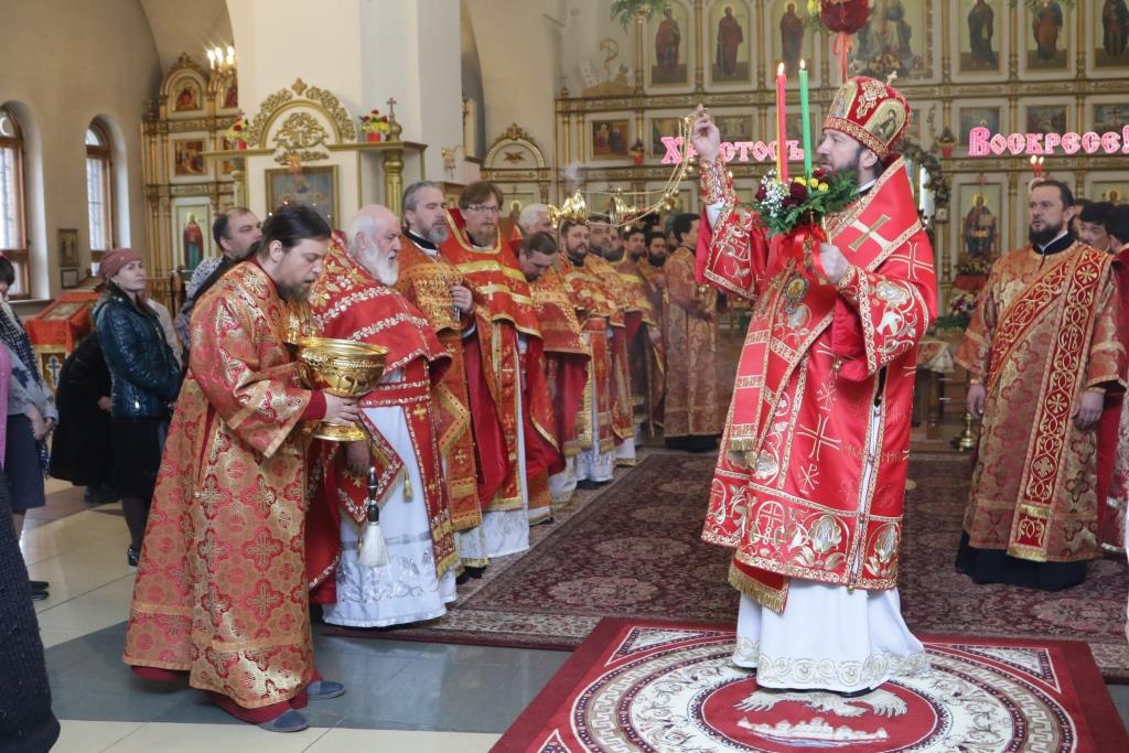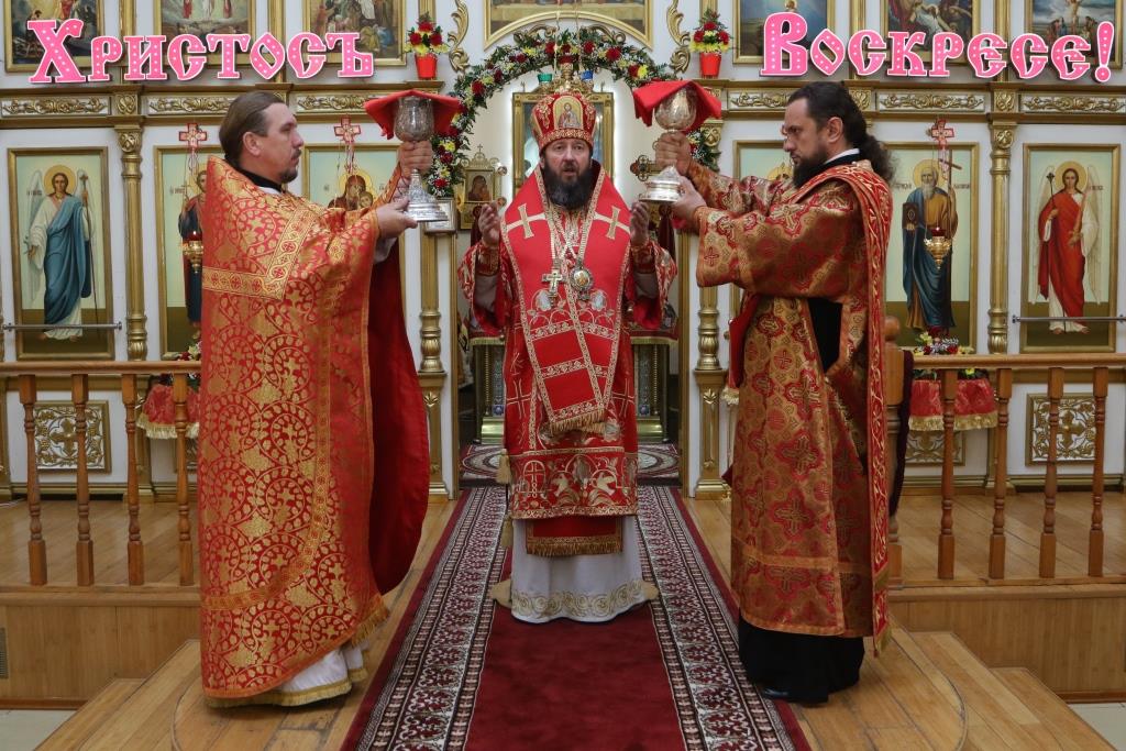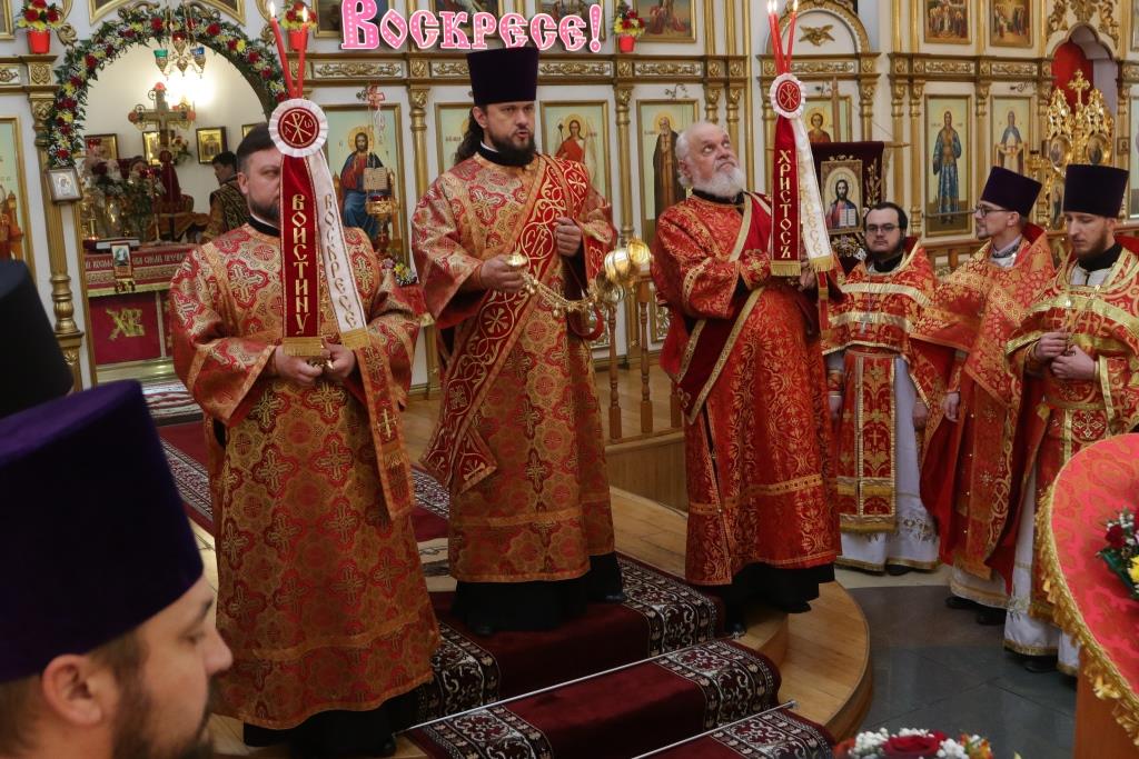 Перед причастием мирян проповедовал ключарь кафедрального собора. После заамвонной молитвы было совершено славление Воскресшему Христу. Соборное богослужение завершилось проповедью епископа Амфилохия.