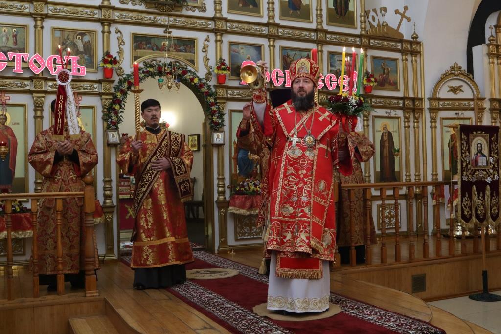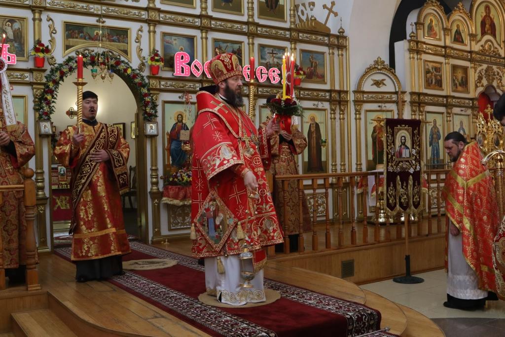 В четверг Светлой седмицы Преосвященнейший епископ Усть-Каменогорский и Семипалатинский Амфилохий возглавил служение Божественной Литургии пасхальным чином в кафедральном соборе во имя святого апостола Андрея Первозванного города Усть-Каменогорска. Архипастырю сослужили: духовник епархии архимандрит Спиридон (Теплухин), благочинный Семипалатинского церковного округа митрофорный протоиерей Феодор Проскурин, благочинный Усть-Каменогорского церковного округа иерей Алексий Анищенко, настоятели и клирики приходов Усть-Каменогорской и Семипалатинской епархии.