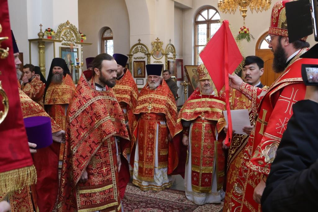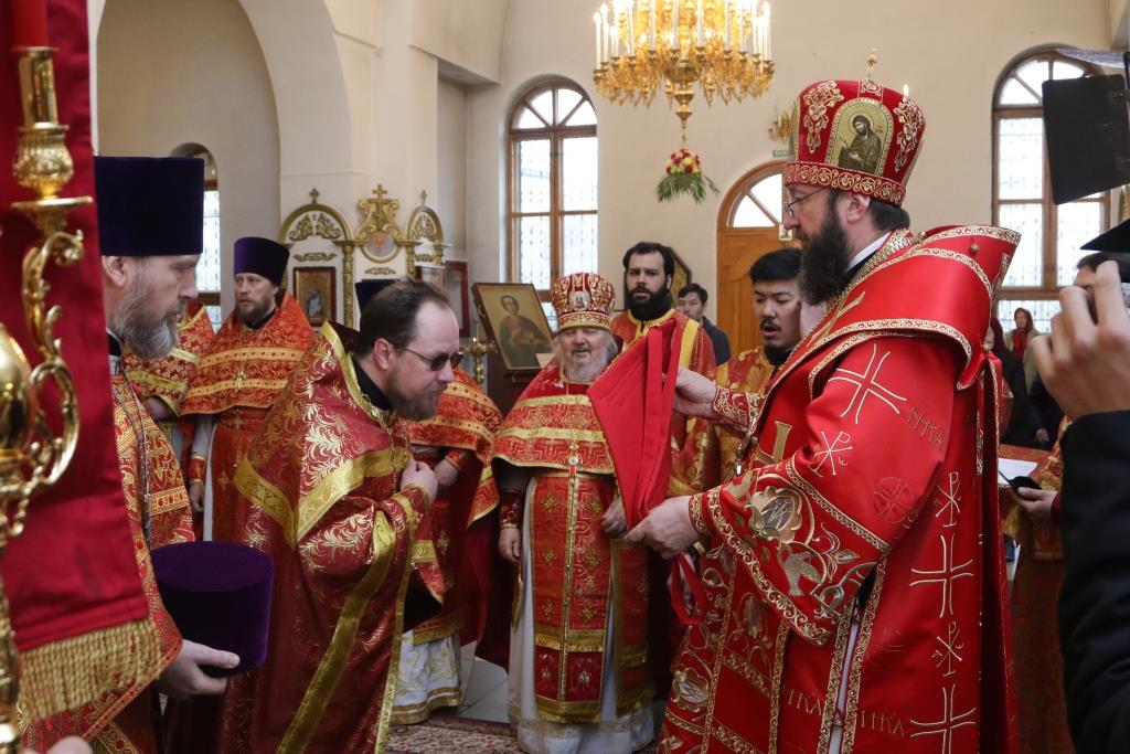 По благословению Святейшего Патриарха Московского и всея Руси Кирилла, на малом входе ряд клириков епархии были удостоены высокой церковной награды – права ношения палицы.