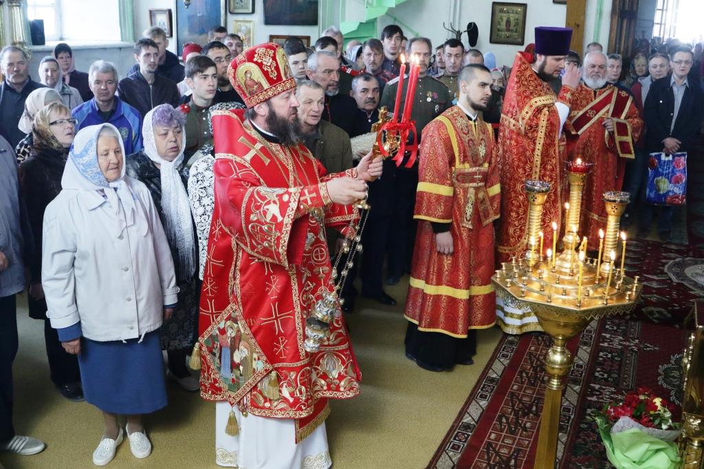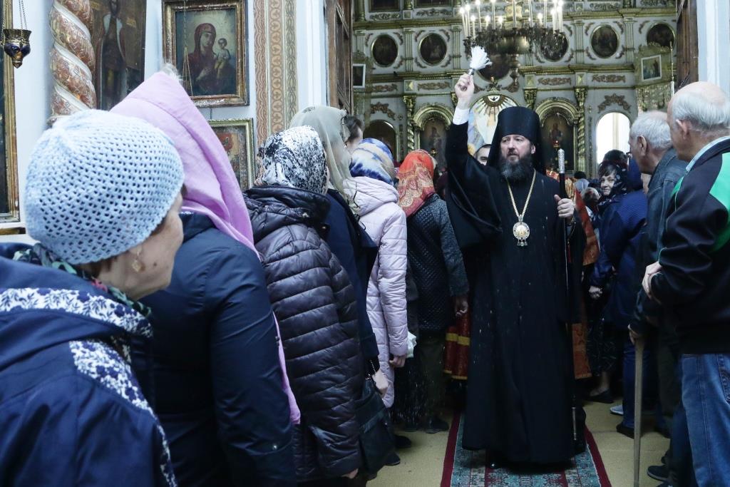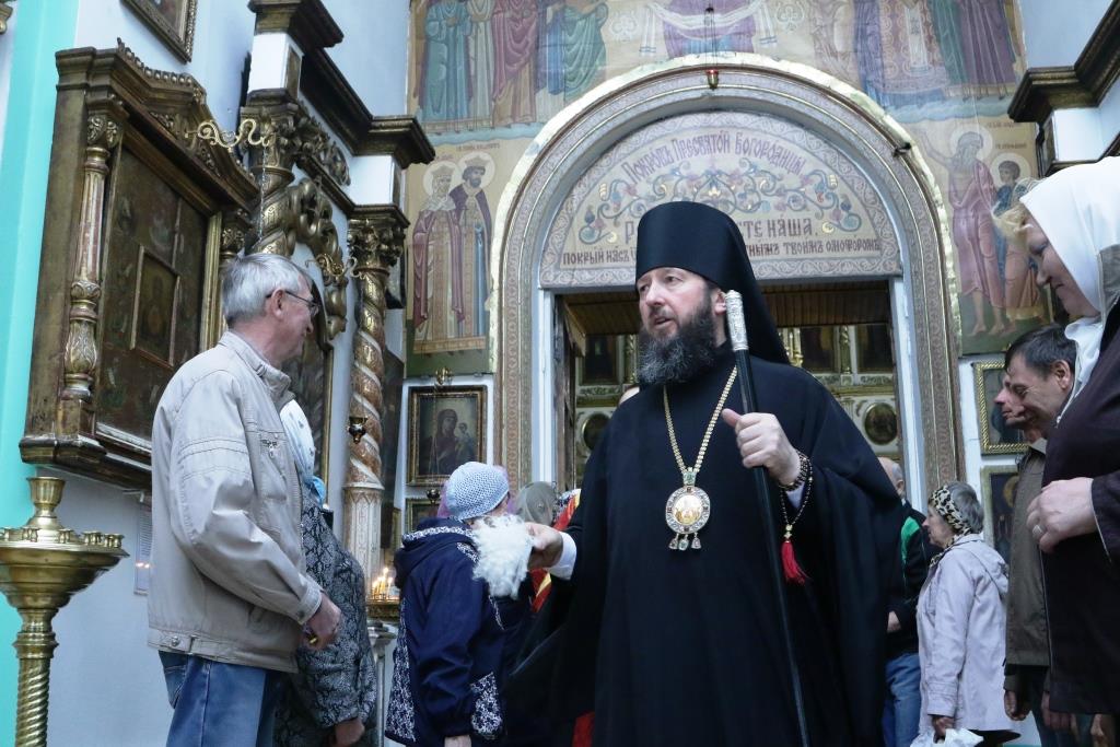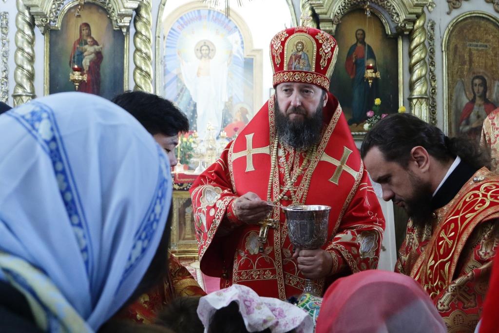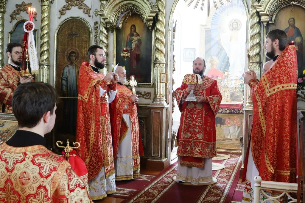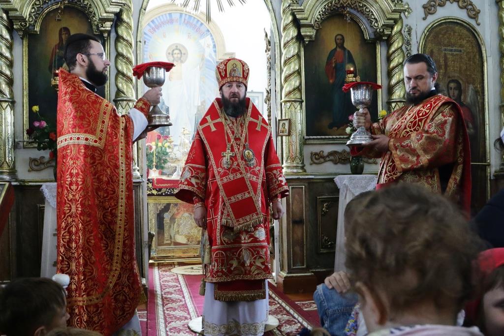 Перед причастием мирян проповедовал иерей Евгений Потылицын. После заамвонной молитвы был совершен крестный ход, после которого епископ Амфилохий поздравил духовенство и молящихся с престольным праздником и обратился к собравшимся со словами проповеди.