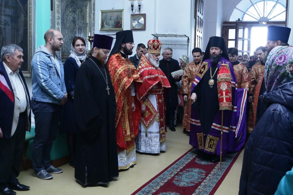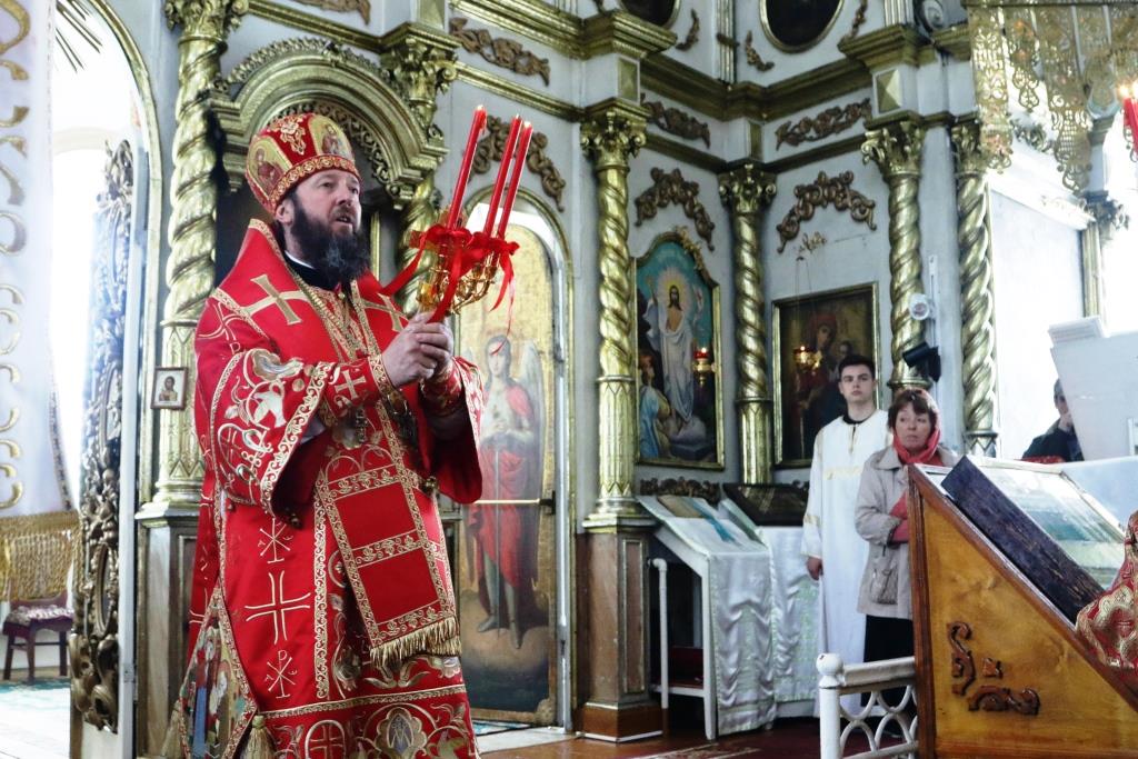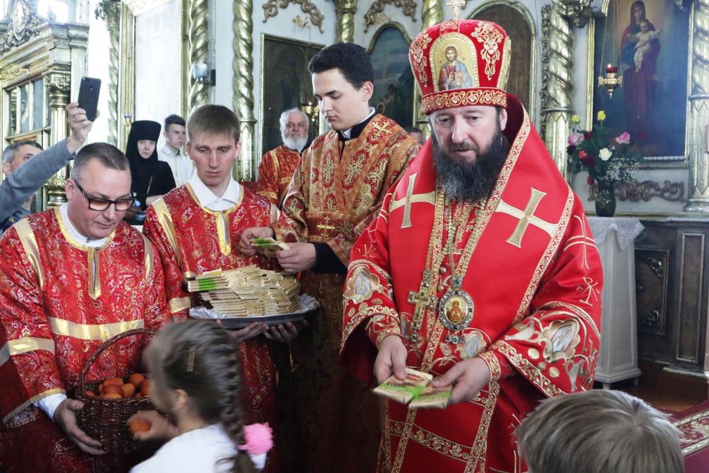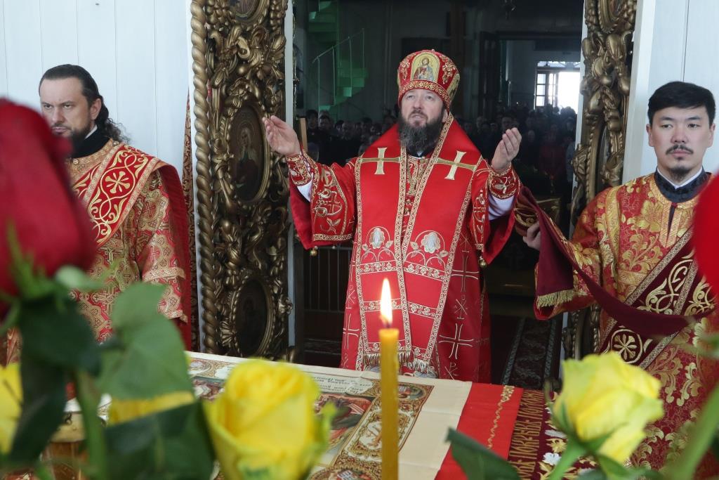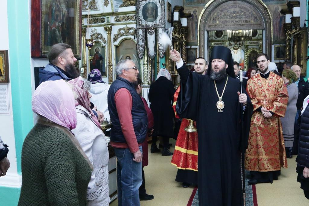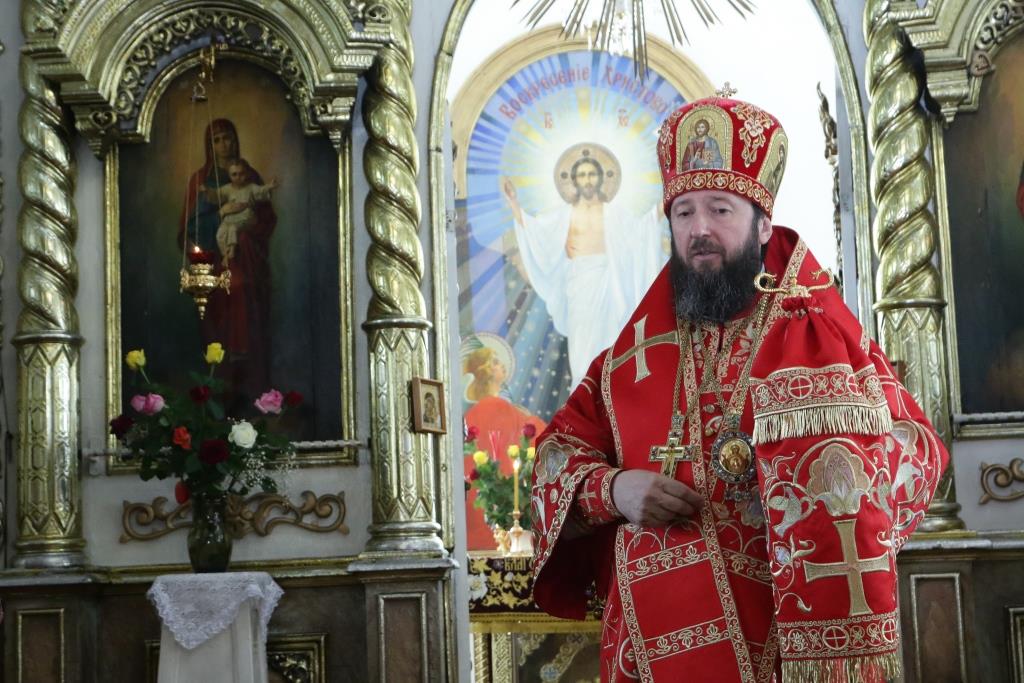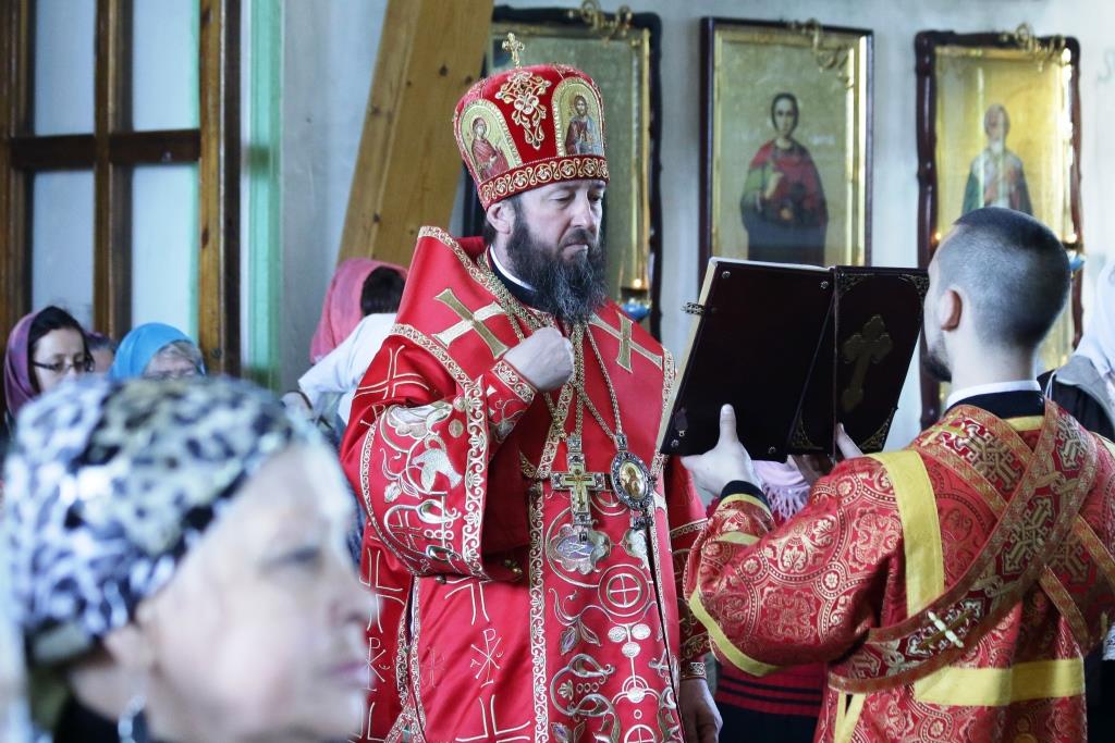 Перед причастием мирян проповедовал иерей Евгений Потылицын. После заамвонной молитвы был совершен крестный ход, после которого епископ Амфилохий поздравил духовенство и молящихся с престольным праздником и обратился к собравшимся со словами проповеди.
