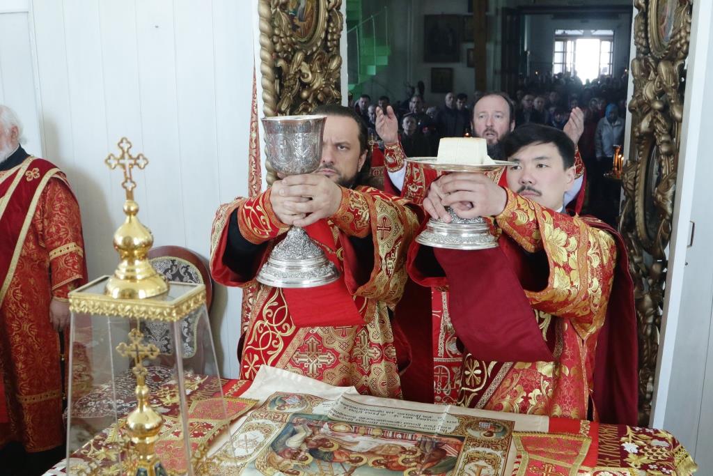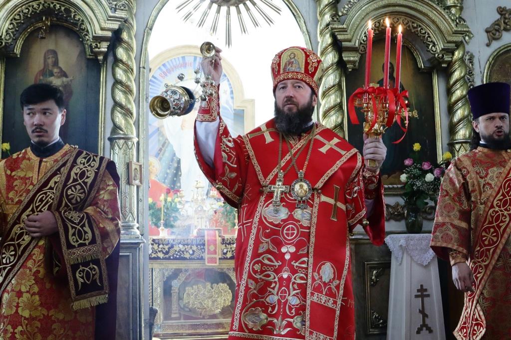 В день престольного праздника второго кафедрального собора Усть-Каменогорской и Семипалатинской епархии Преосвященнейший епископ Амфилохий возглавил служение Божественной Литургии святителя Иоанна Златоуста пасхальным чином в кафедральном соборе в честь Воскресения Христова города Семипалатинска. Владыке сослужили: благочинный Семипалатинского церковного округа, настоятель Воскресенского собора митрофорный протоиерей Феодор Проскурин, клирики храма протоиерей Михаил Безродний и иерей Евгений Потылицын, ключарь собора иеромонах Мануил (Чабанов), секретарь епархии диакон Илия Кван, протодиакон Андрей Дудник, диакон Николай Белоконь.