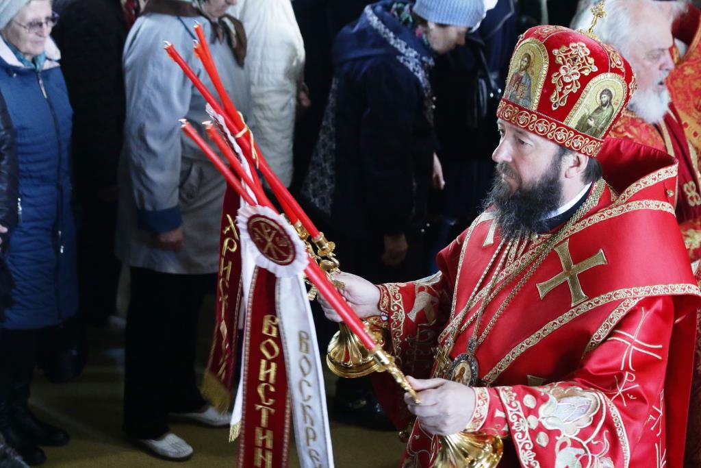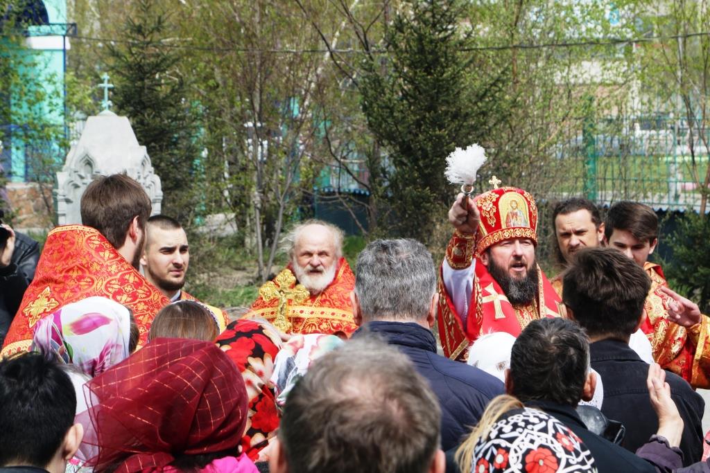 После проповеди Преосвященнейший Архипастырь призвал благословение на народ Божий, и пожелал всем мира и любви Христе Воскресшем.