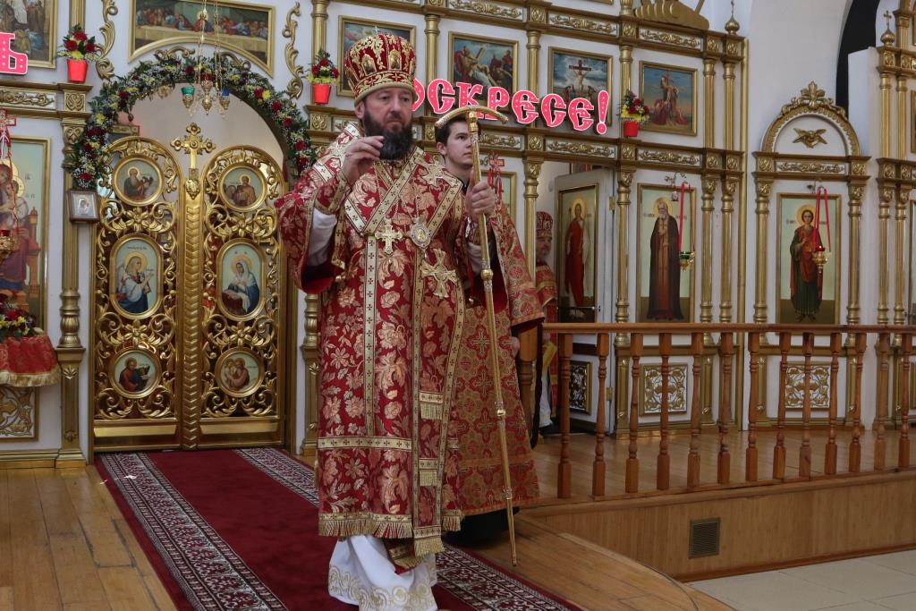На запричастном стихе проповедовал ключарь кафедрального собора. По окончании Литургии епископ Амфилохий обратился к народу Божию с Архипастырским словом:
