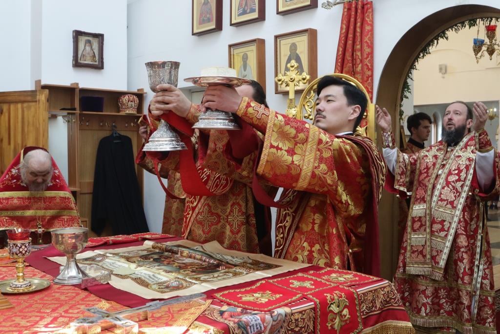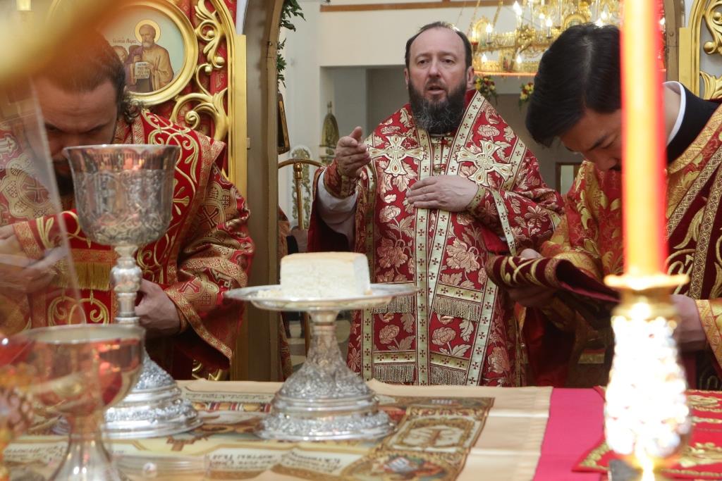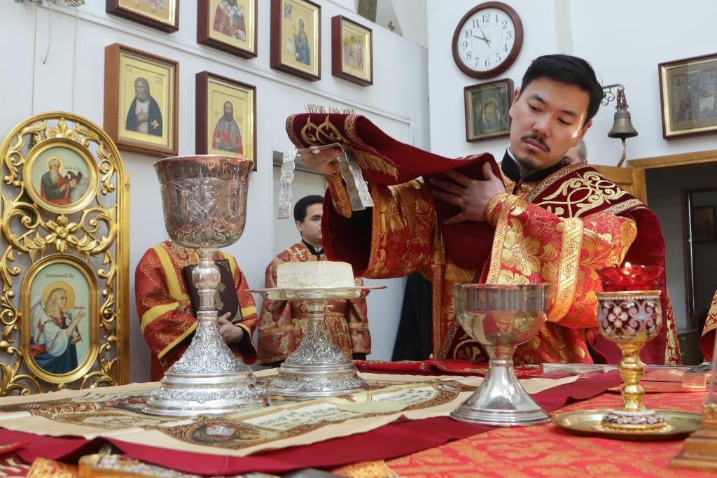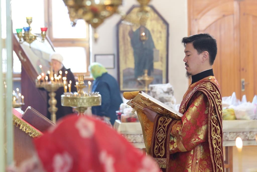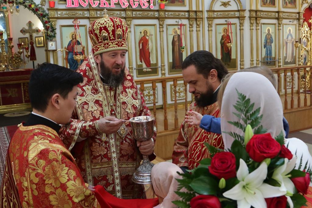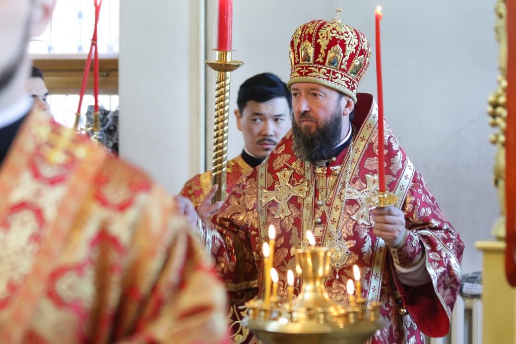 Архипастырю сослужили: духовник епархии архимандрит Спиридон (Теплухин), ключарь кафедрального собора иеромонах Никодим (Авдеев), протоиерей Николай Темирбаев, секретарь епархии диакон Илия Кван, протодиакон Андрей Дудник, диакон Владимир Лаврешин.