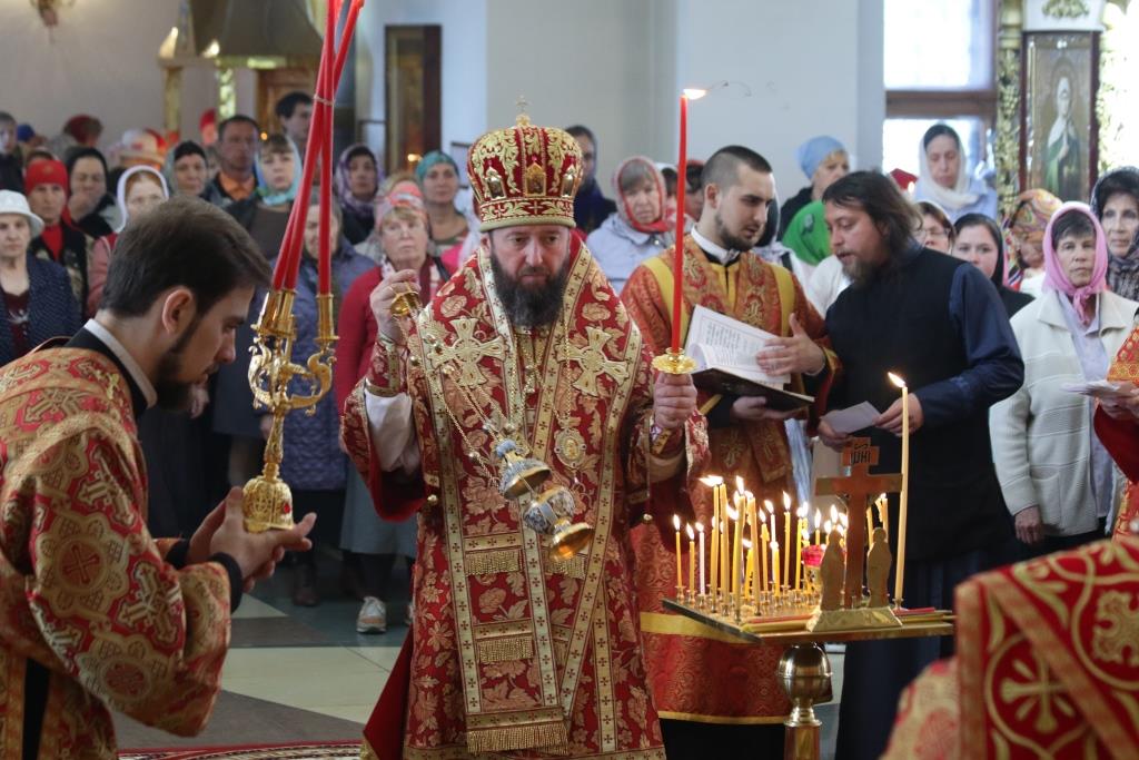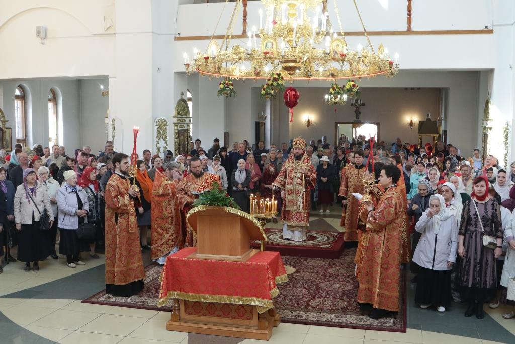 На девятый день после Пасхи Христовой Преосвященнейший епископ Усть-Каменогорский и Семипалатинский Амфилохий возглавил служение Божественной Литургии святителя Иоанна Златоуста и совершил панихиду в кафедральном соборе во имя святого апостола Андрея Первозванного города Усть-Каменогорска.