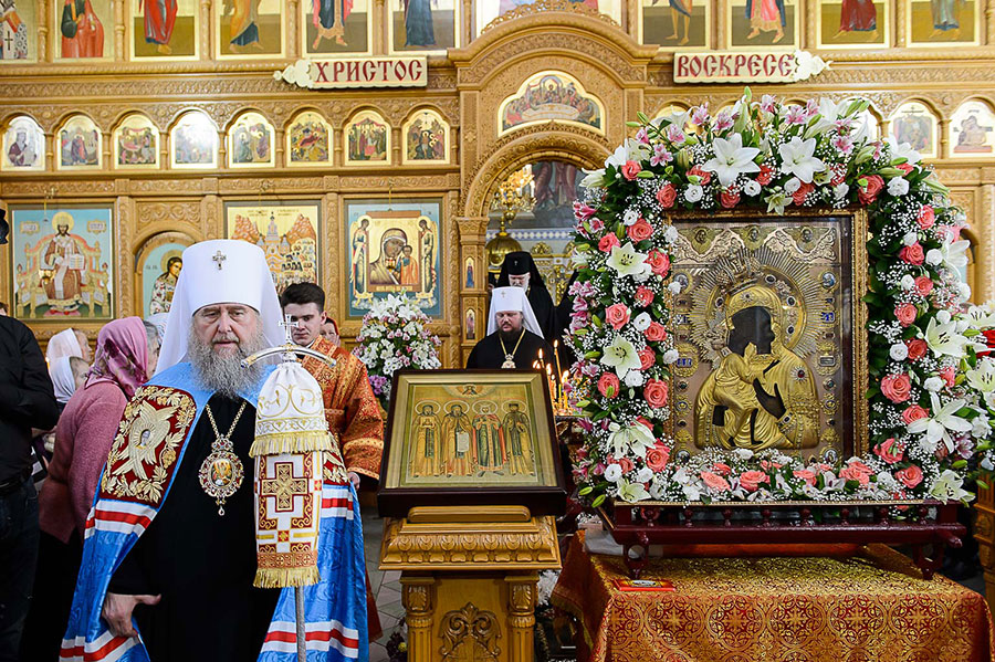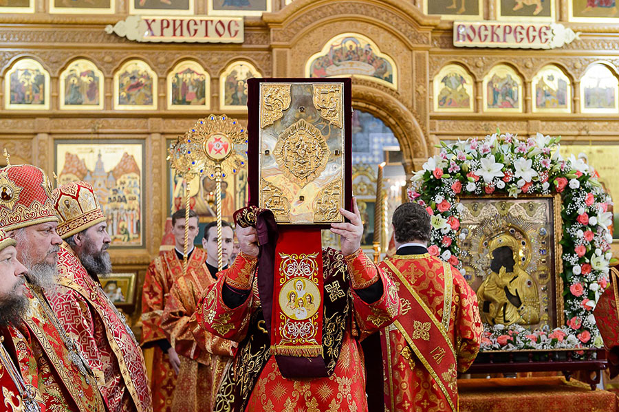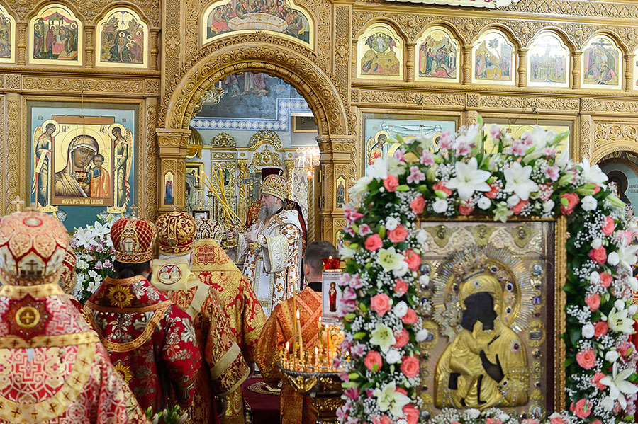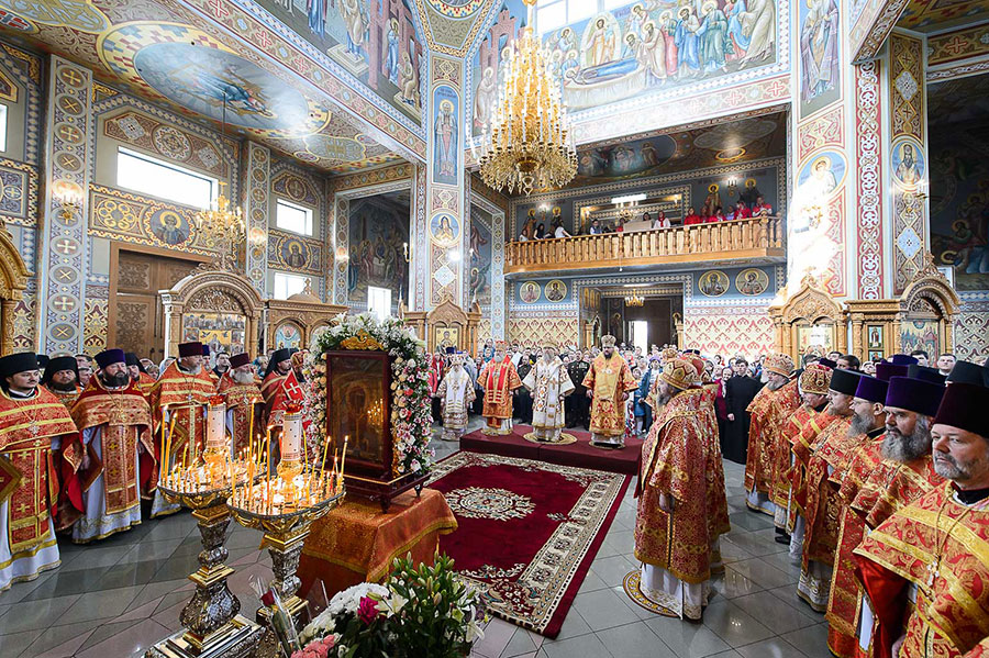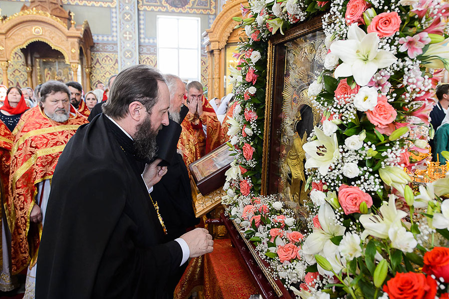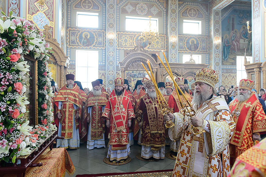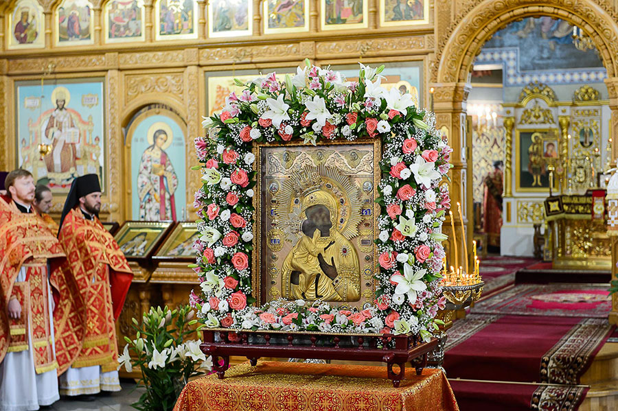 По благословению Святейшего Патриарха Московского и всея Руси Кирилла на торжества из города Костромы была доставлена чудотворная Феодоровская икона Пресвятой Богородицы. Находящаяся с 10 мая в пределах Казахстана святыня накануне была принесена в Софийский собор Алма-Аты.
