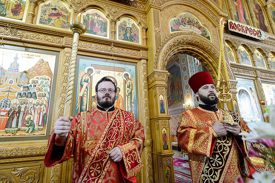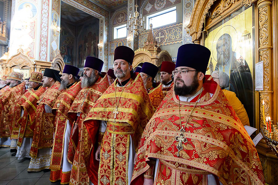 Также митрополиту Александру сослужили: благочинный приходов Алма-Аты митрофорный протоиерей Валерий Захаров, благочинный приходов Астаны архимандрит Сергий (Карамышев), благочинный Уральского церковного округа Уральской епархии игумен Дионисий (Козулев), секретарь Единецко-Бричанской епархии протоиерей Адриан Котелеа, секретарь епископа Гайновского протоиерей Павел Стерлингов; сопровождающие в паломничестве Феодоровскую икону Богородицы клирики Костромской Митрополии – настоятель Петропавловского храма города Костромы митрофорный протоиерей Сергий Степанов, ключарь Богоявленско-Анастасиина кафедрального собора протоиерей Владимир Воронин, древлехранитель Костромской епархии иерей Михаил Мостовой, клирик Воскресенского собора Костромы иеродиакон Иоасаф (Синявин), клирик Богоявленско-Анастасииного собора диакон Сергий Бахтин; руководители отделов и комиссий Казахстанского Митрополичьего округа в священном сане; благочинные, настоятели храмов и духовенство Алма-Атинской епархии; клирики, прибывшие с архипастырями.