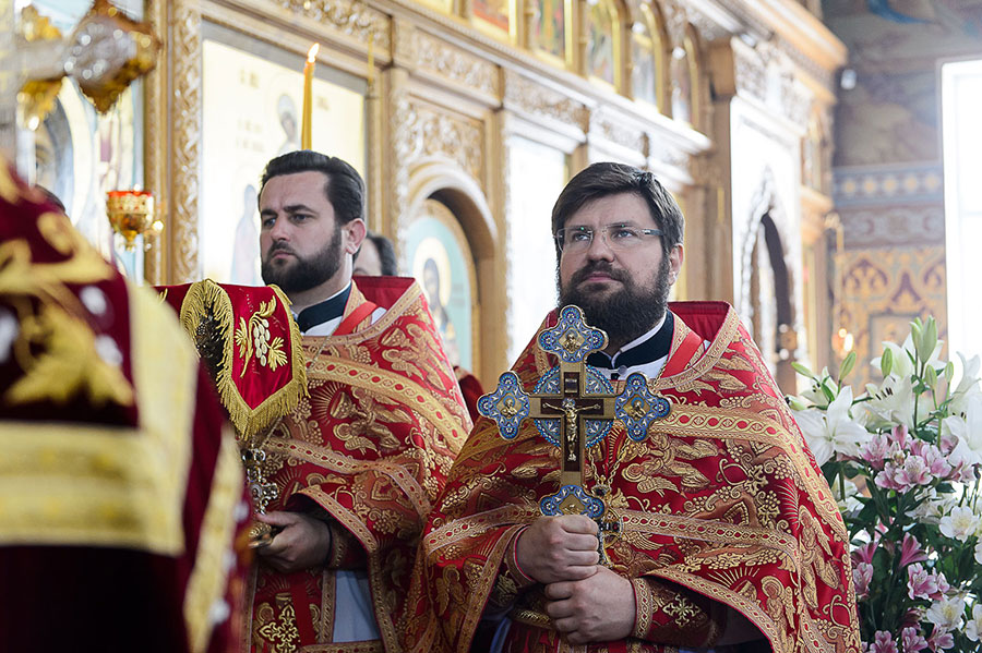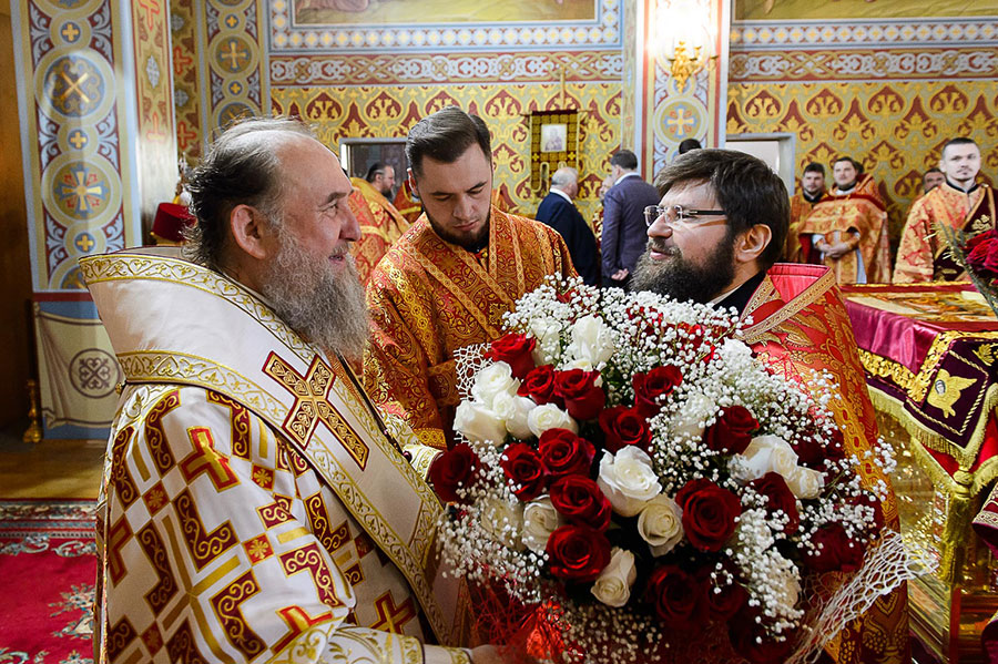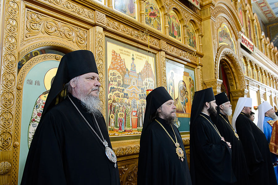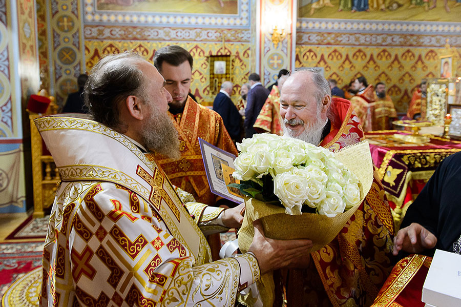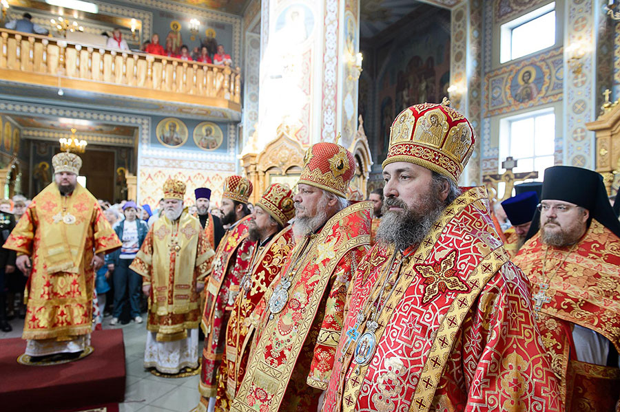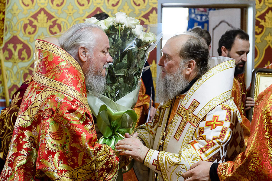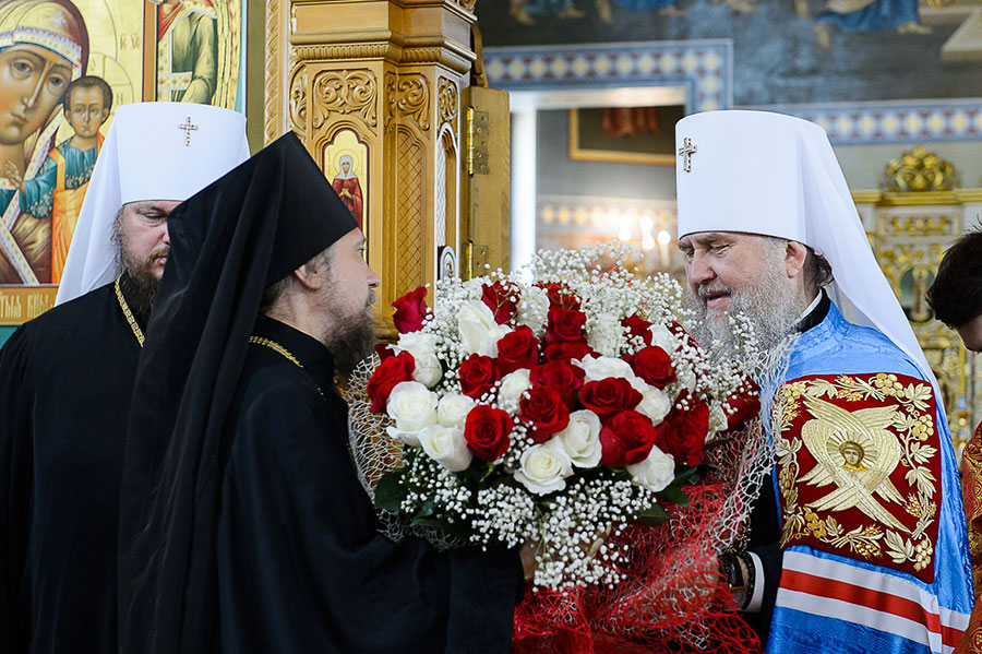 Главе Казахстанского Митрополичьего округа сослужили: глава Ханты-Мансийской митрополии митрополит Ханты-Мансийский и Сургутский Павел, глава Костромской митрополии митрополит Костромской и Нерехтский Ферапонт, архиепископ Уральский и Актюбинский Антоний, архиепископ Чимкентский и Таразский Елевферий; епископ Единецкий и Бричанский Никодим (Православная Церковь Молдовы), викарий Варшавской епархии епископ Гайновский Павел (Польская Православная Церковь); викарий Астанайской епархии епископ Талдыкорганский Нектарий, управляющий делами Православной Церкви Казахстана епископ Каскеленский Геннадий, епископ Павлодарский и Экибастузский Варнава, епископ Карагандинский и Шахтинский Севастиан, епископ Усть-Каменогорский и Семипалатинский Амфилохий, епископ Кокшетауский и Акмолинский Серапион.