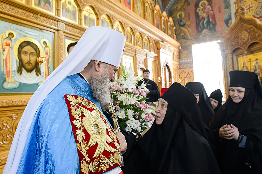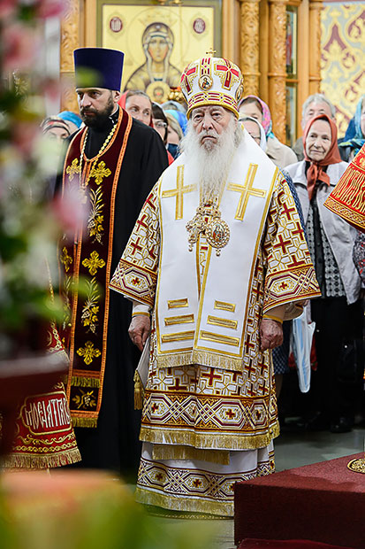 «С каким глубоким внутренним содержанием продолжают звучать слова апостольского приветствия – гимн жизни, гимн победы Господа над смертью – Христос Воскресе! Этот священный возглас раздается на Небе и на земле, звучит на разных языках во всем мире. В дни святой Пасхи мы прославляем Христа Воскресшего, Христа – Победителя смерти и Начальника жизни. Сегодня наша радость многократно усугубляется присутствием в Южной столице Казахстана чудотворной Феодоровской иконы Пресвятой Богородицы – Великой Паломницы, которая совершает свое путешествие на просторах Великой Степи по благословению Святейшего Патриарха Московского и всея Руси Кирилла. Древнему лику Преблагословенной Владычицы поклонились верующие в Кокчетаве, Нур-Султане, Караганде, а сегодня мы встречаем Заступницу усердную здесь, в Алма-Ате. Благодарю за поздравление, которое произнес управляющий делами Казахстанского Митрополичьего округа епископ Каскеленский Геннадий по случаю дня моего рождения. Мой личный праздник приходится на празднование в честь иконы Божией Матери «Неупиваемая Чаша» и память костромского святого преподобного Иакова Железноборовского и великомученицы Ирины. Всегда прошу Царицу Небесную и этих святых, чтобы они предстательствовали на Небе, дабы милость Божия не оставила меня в служении, вверенном Церковью моему недостоинству. Благодарю Господа и Бога моего за все милости и щедроты, которые были явлены в продолжение всех 62-х лет моей жизни.