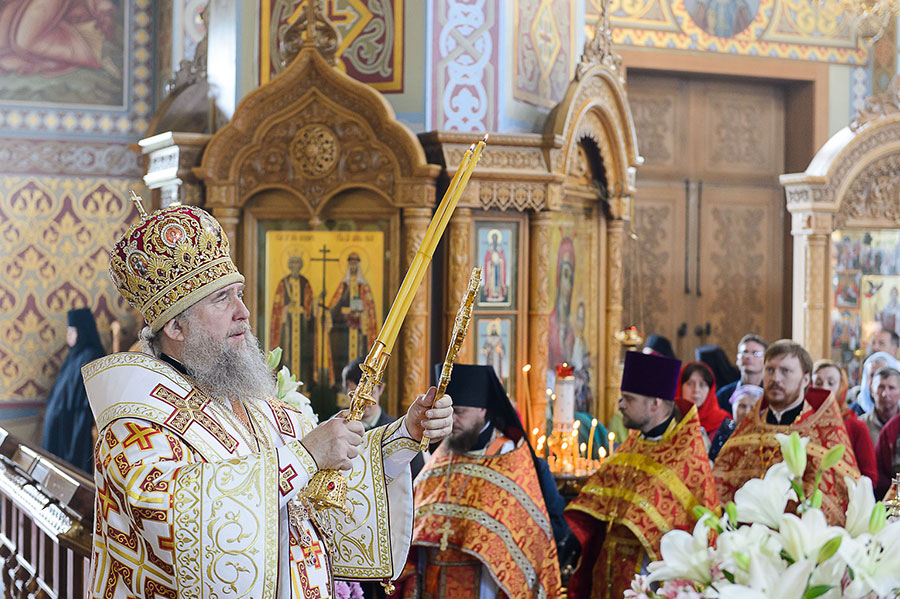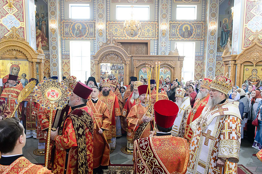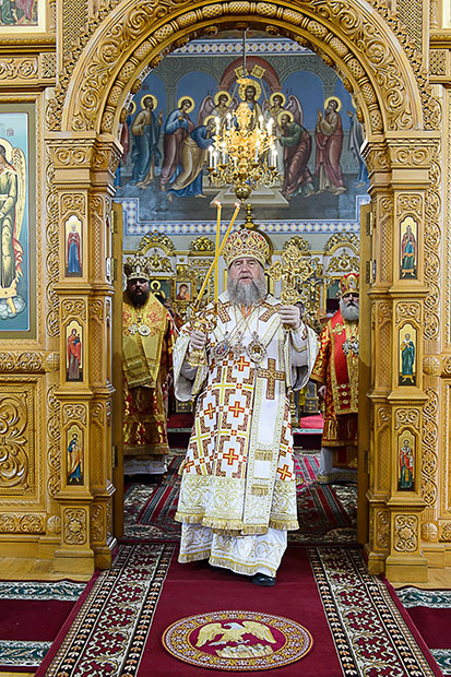 По запричастном стихе было оглашено Обращение митрополита Астанайского и Казахстанского Александра по случаю принесения в Казахстан чудотворной Феодоровской иконы Пресвятой Богородицы.