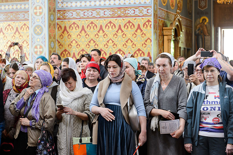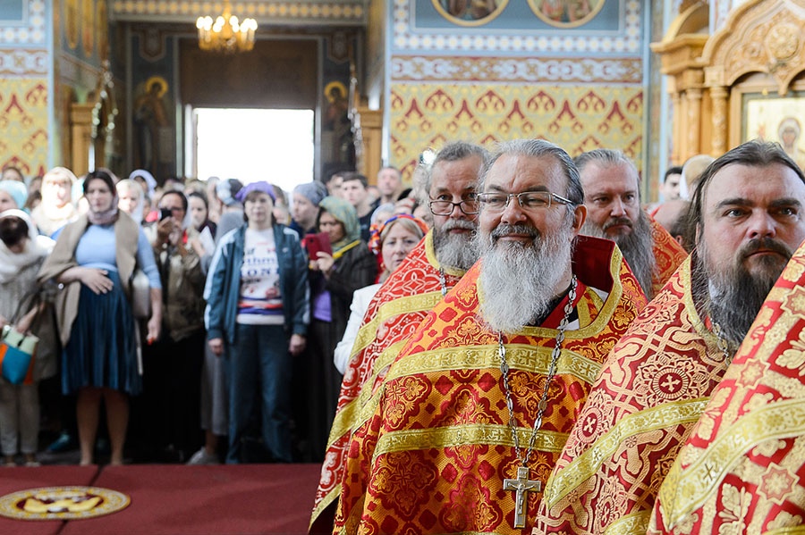 За богослужением молились: настоятельница Иверско-Серафимовского женского монастыря Алма-Аты игумения Любовь (Якушкина) с сестрами обители; настоятельница Свято-Троицкого Никольского монастыря города Ташкента игумения Екатерина (Мальгина); и.о. настоятельницы Петропавловского монастыря города Павлодара монахиня Серафима (Болибок); сотрудники Алма-Атинского епархиального управления; казачество; студенты Алма-Атинской православной духовной семинарии; благотворители епархии. Почтить великую святыню Православия собрались многочисленные верующие.