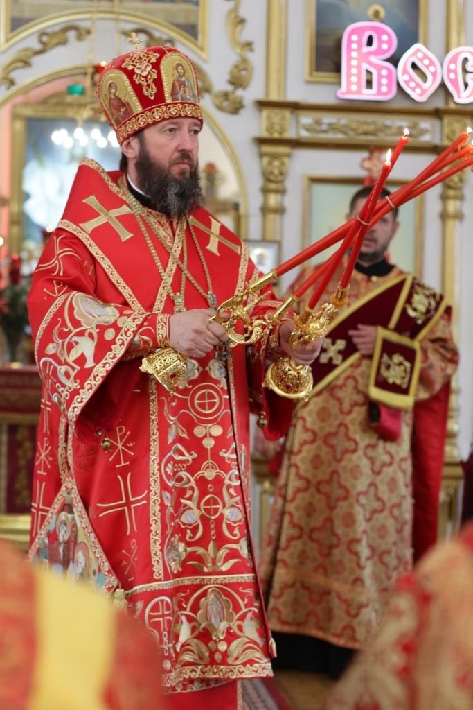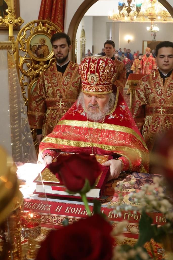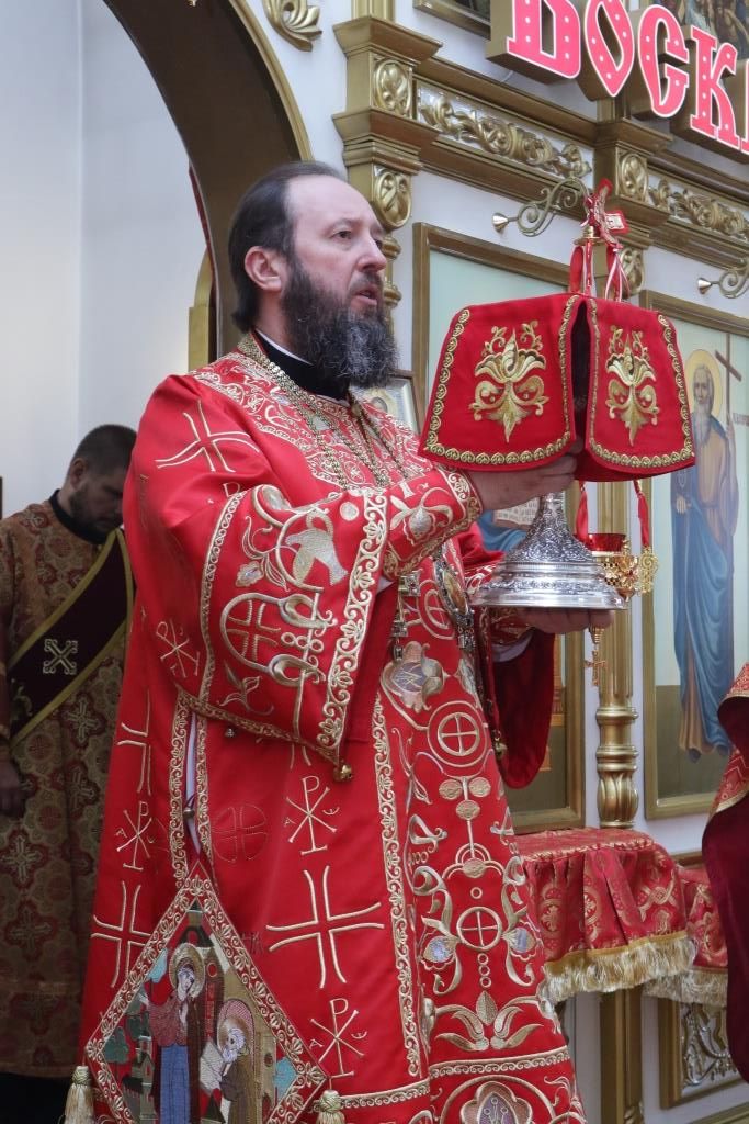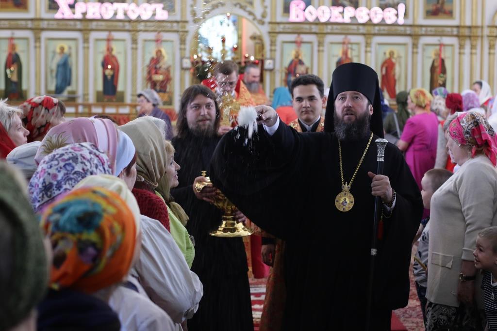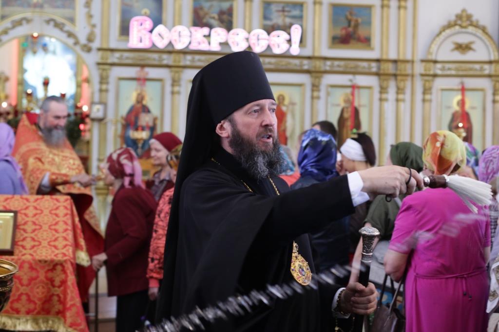 В завершение воскресной Литургии Преосвященнейший Архипастырь призвал Божие благословение на паству и окропил молящихся святой водой.