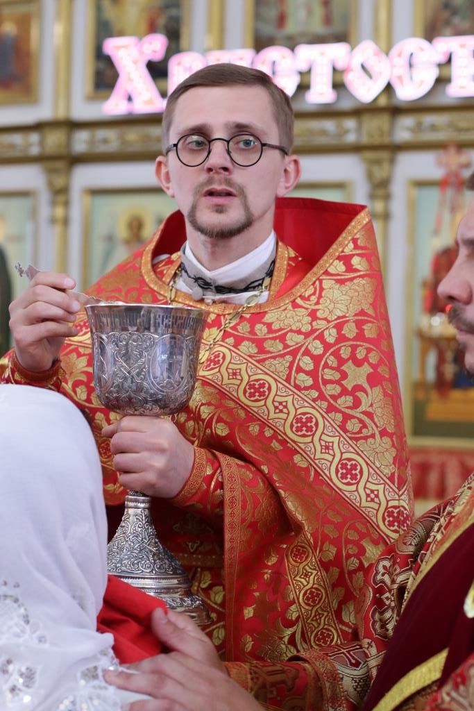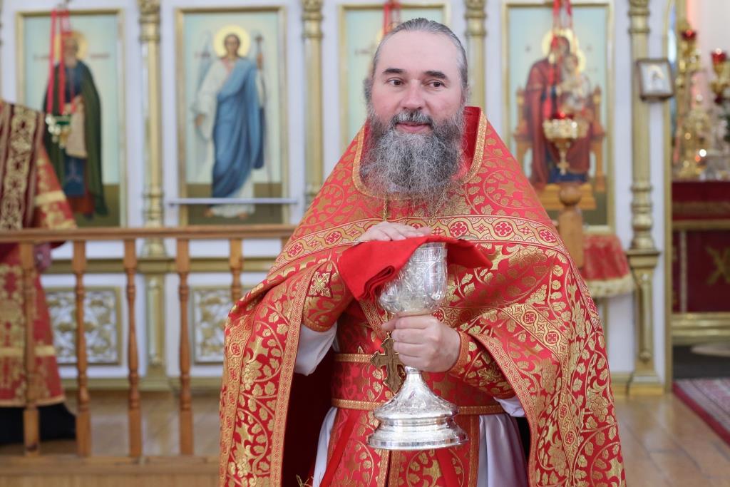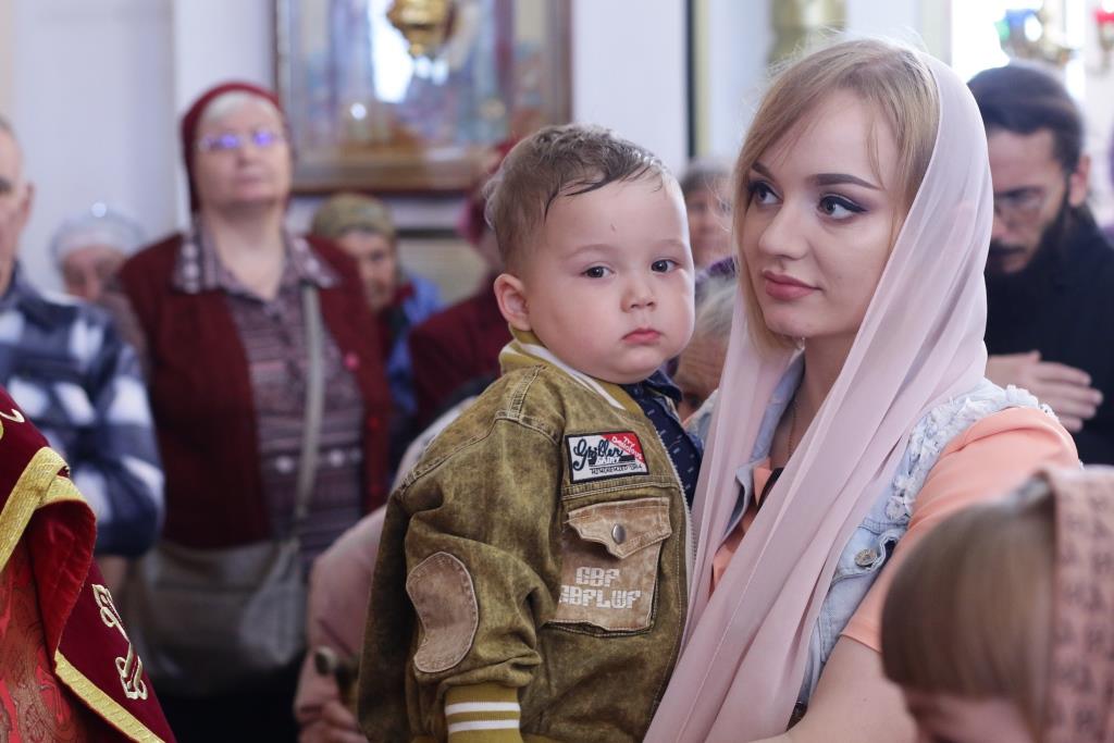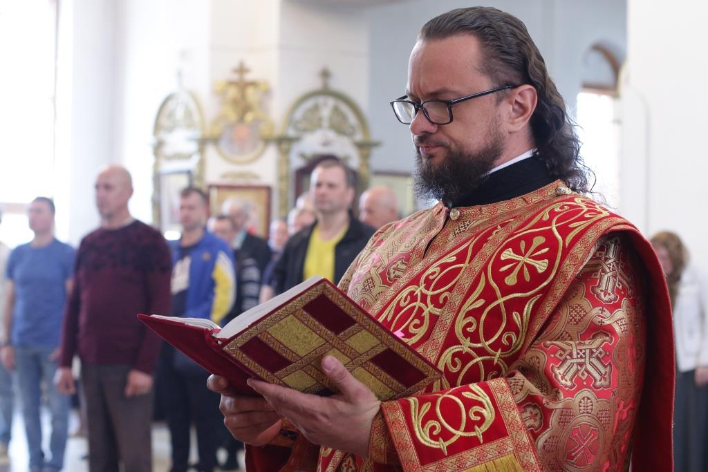 Божественная Литургия началась торжественным возглашением гимна победы Господа Иисуса Христа над смертью – троекратным пением пасхального тропаря «Христос воскресе из мертвых». Перед причастием мирян проповедовал священник Константин Дьяков.