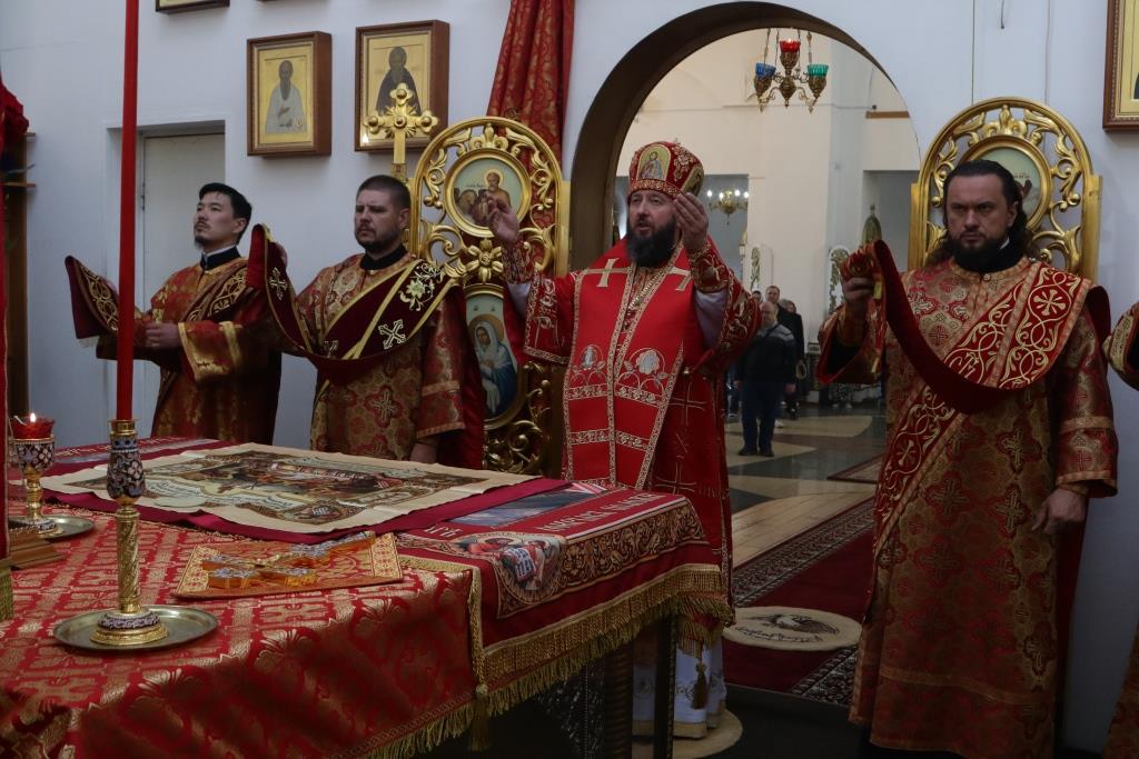 В шестое воскресение после праздника Пасхи Христовой Преосвященнейший епископ Усть-Каменогорский и Семипалатинский Амфилохий совершил Божественную Литургию святителя Иоанна Златоуста в Свято-Андреевском кафедральном соборе города Усть-Каменогорска. Владыке епископу сослужили: духовник епархии архимандрит Спиридон (Теплухин), ключарь кафедрального собора иеромонах Никодим (Авдеев), заведующий канцелярией епархии иерей Константин Дьяков, секретарь епархии диакон Илия Кван, протодиакон Георгий Засыпкин, протодиакон Андрей Дудник, диакон Владимир Лаврешин.